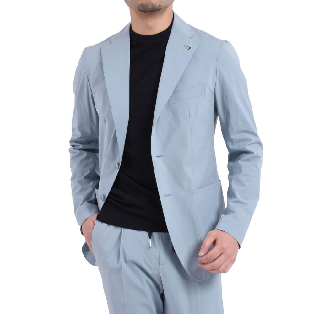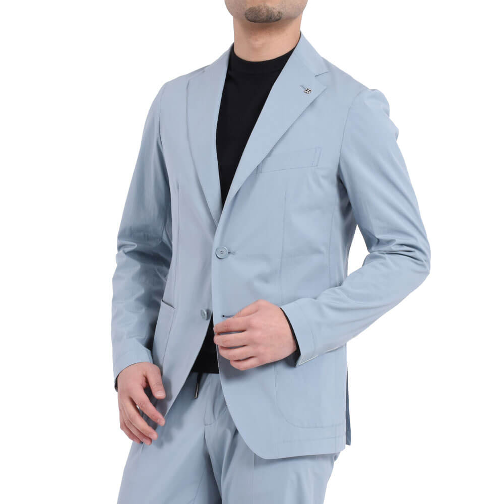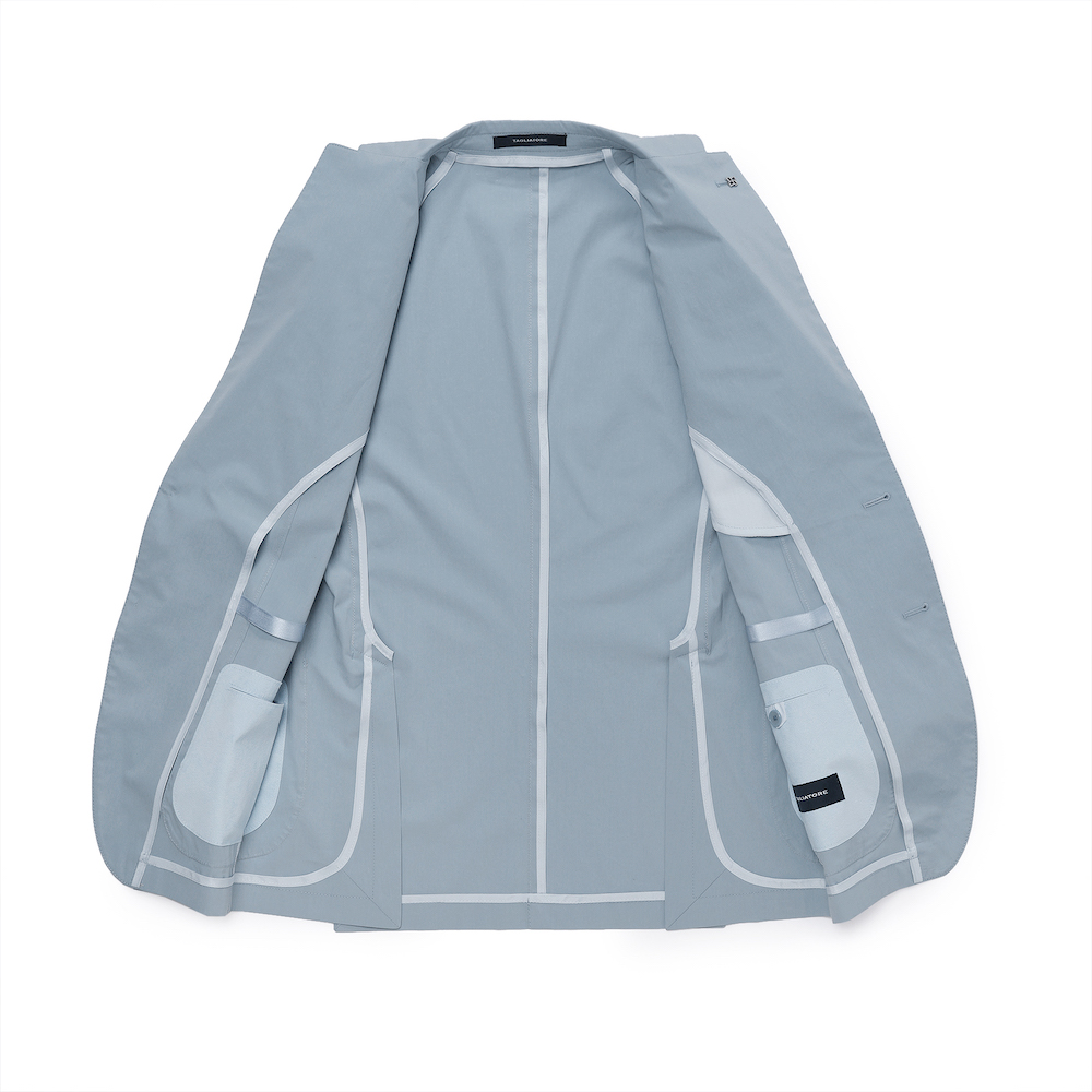 ・モデルは「TAGLIATORE(タリアトーレ)」が誇る軽量仕立ての"DAKAR"。形状保持とボリューム感を出すためにジャケットのキモとも言える襟、肩、バスト部分以外は一枚仕立てです。見た目は完全にジャケットなのに着心地はシャツ並みという軽量感をお楽しみ頂けます。