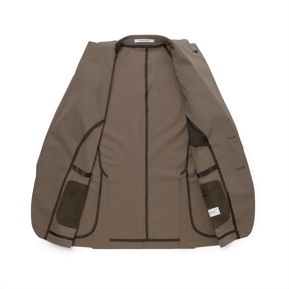 ・モデルは「TAGLIATORE(タリアトーレ)」が誇る軽量仕立ての"DAKAR"。形状保持とボリューム感を出すためにジャケットのキモとも言える襟、肩、バスト部分以外は一枚仕立てです。見た目は完全にジャケットなのに着心地はシャツ並みという軽量感をお楽しみ頂けます。