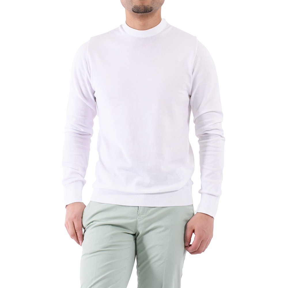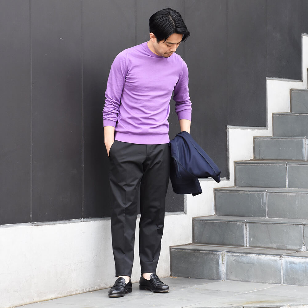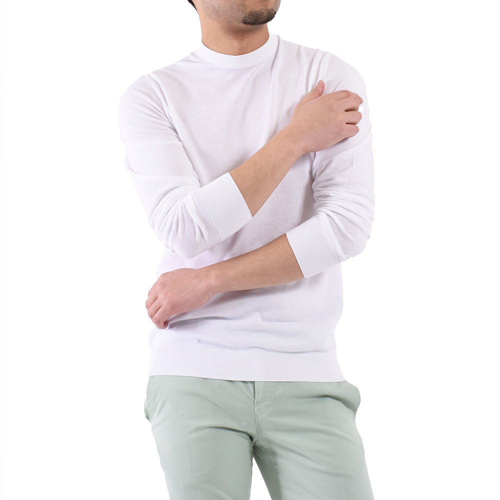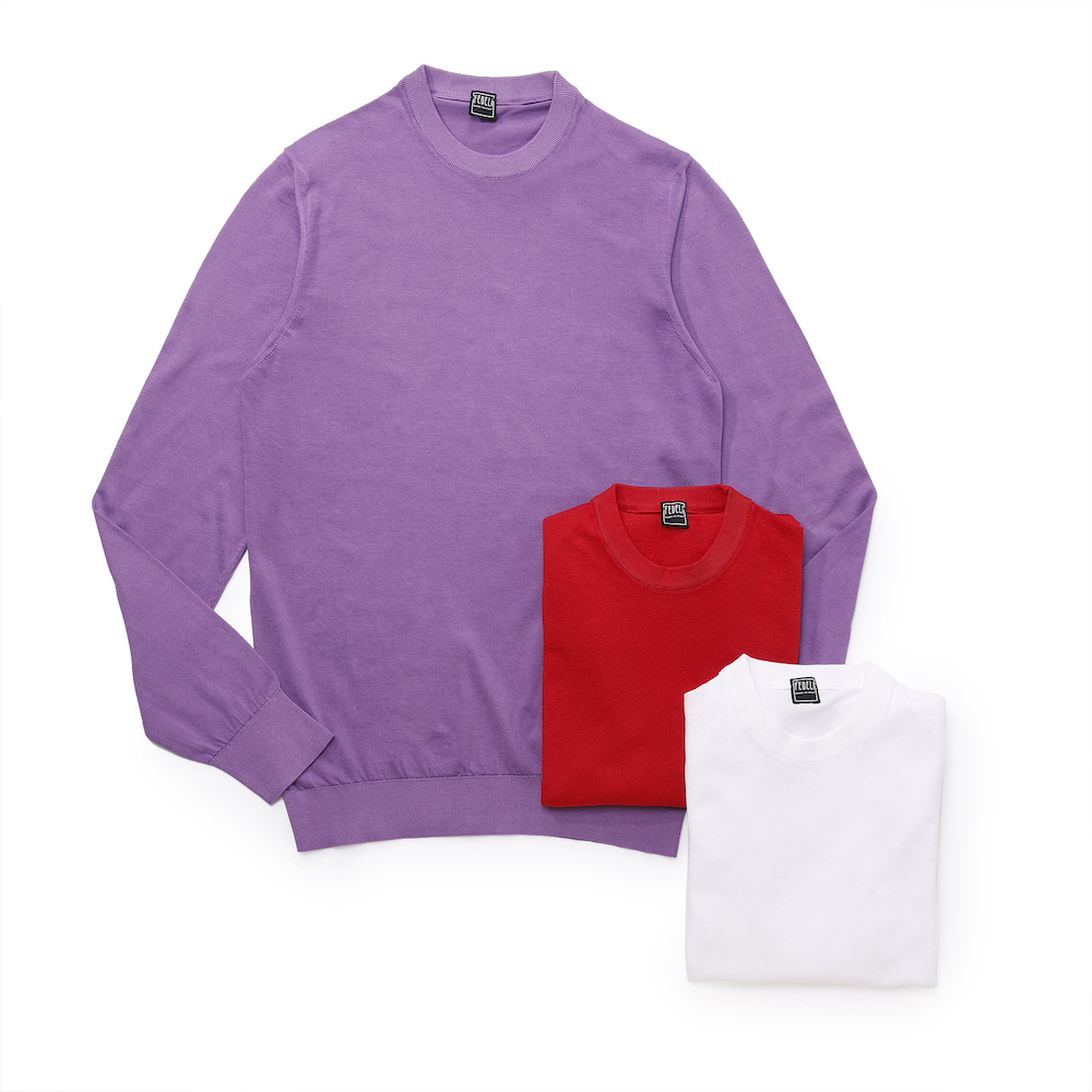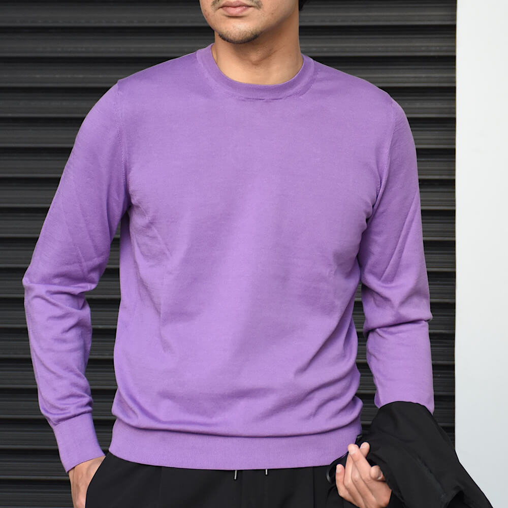 ・世界三大綿の一つに挙げられる高品質なスーピマコットンを使用した「FEDELI (フェデリ)」のハイゲージクルーネックニットは、カットソーのように着られる逸品。