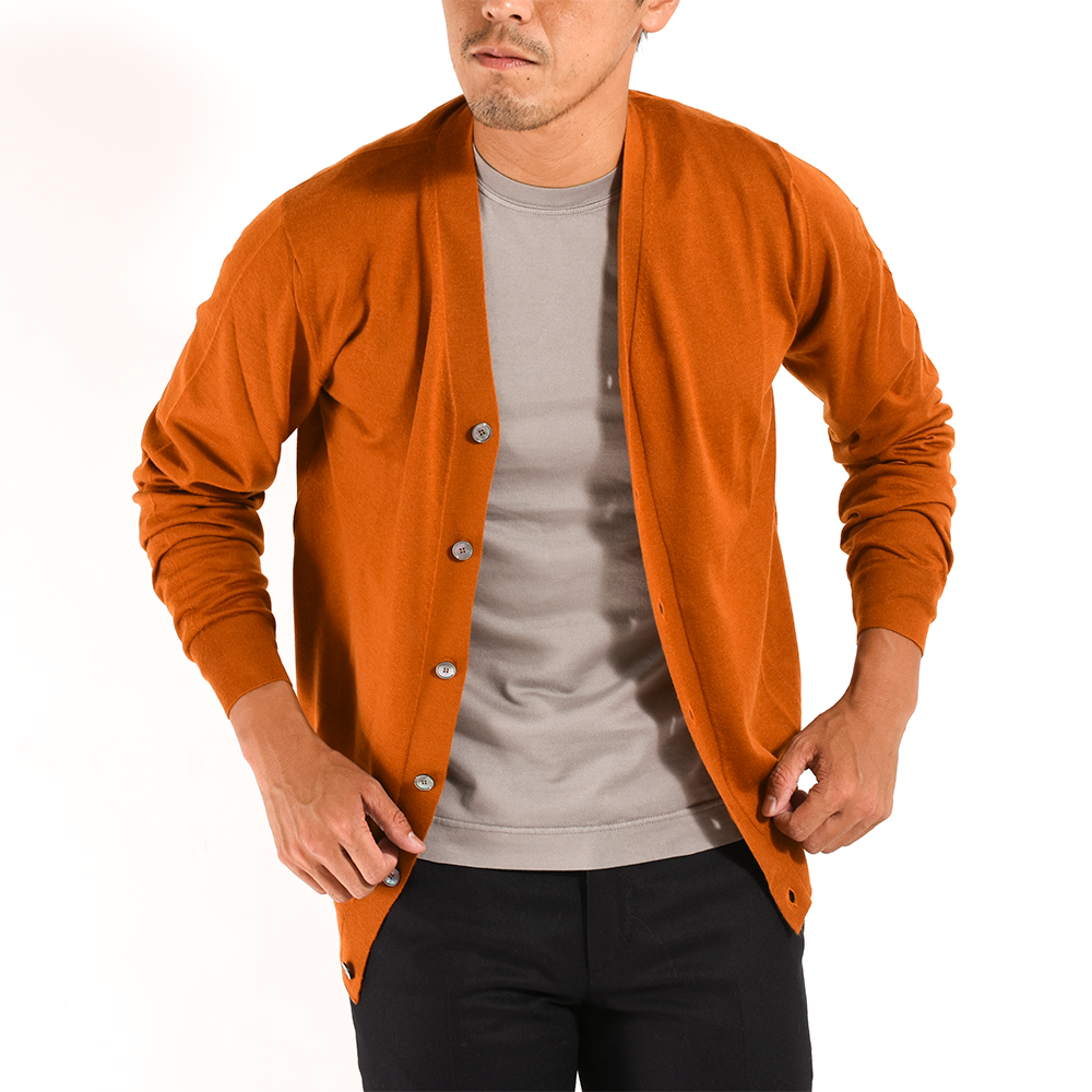 リブが少し太めで抜け感のある雰囲気がありカジュアルなシーンはもちろんのことビジネスシーンでも少し抜け感の生まれるカーディガンとして楽しめる一着です。