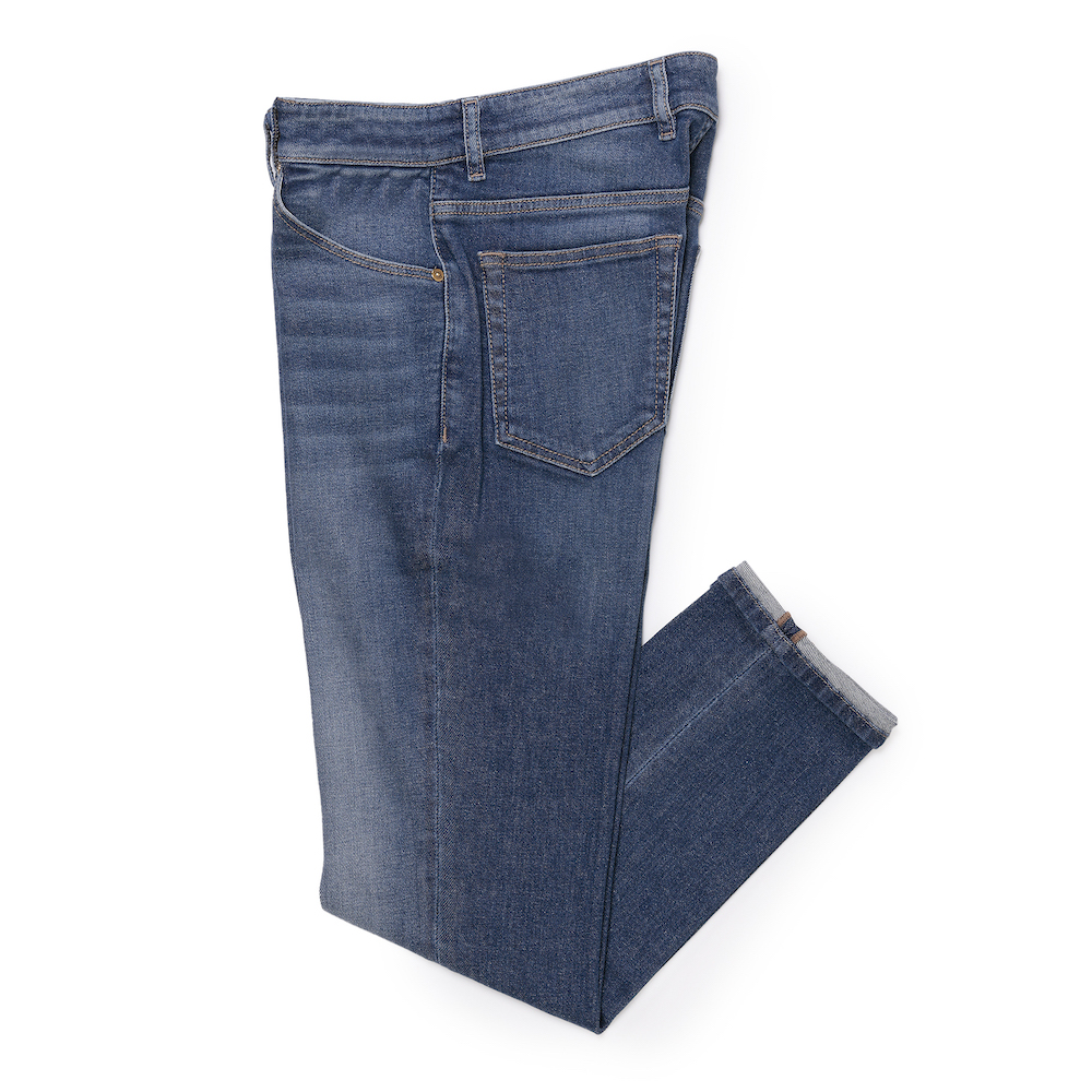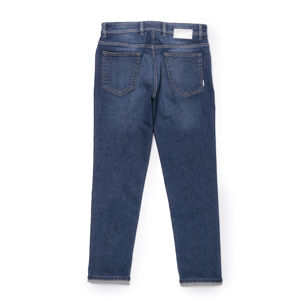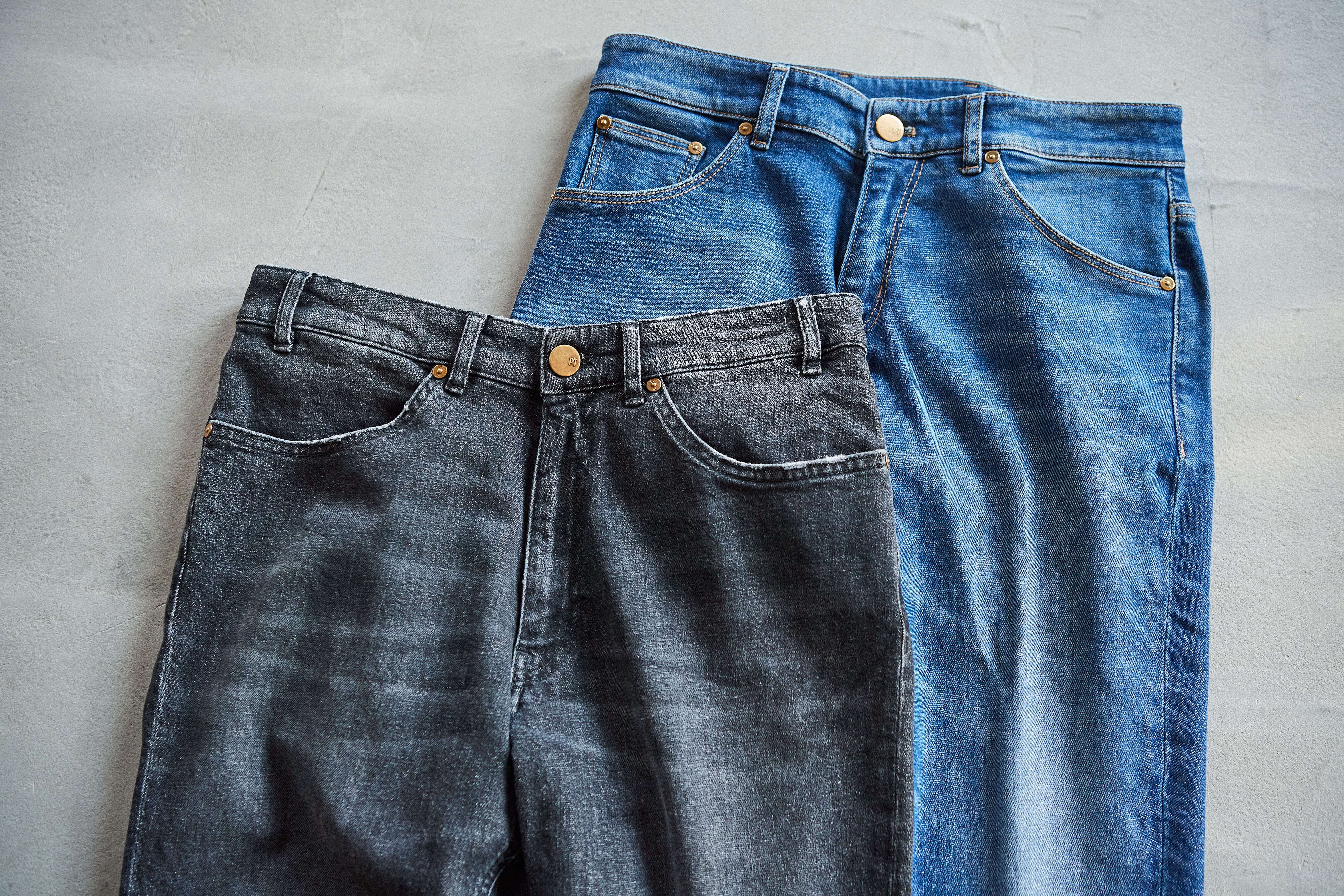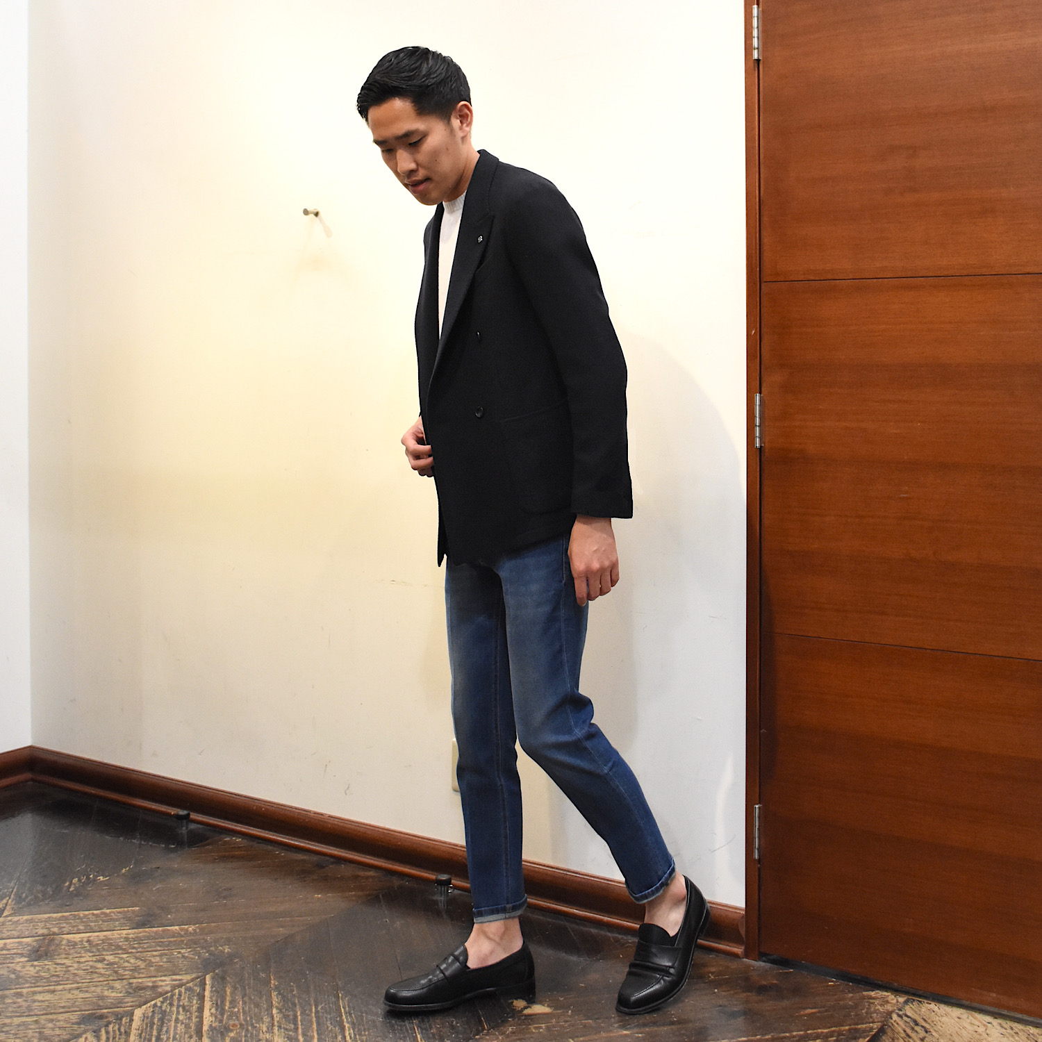 ・こちらは9オンスのブルーデニムをミディアムウォッシュし、軽めの加工を入れることでこなれ感を加えたもの。色合いと加工具合にやり過ぎ感がなく、年齢問わず取り入れやすい仕上がりです。