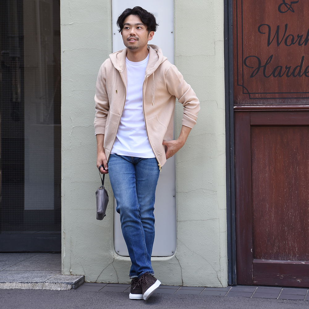 ・"SWING"と比較すると股上が深く腰回りにややゆとりを持たせており、シルエットはテーパード感が強くなっています。細身は好きだけどピタピタ過ぎない方が良い、という方にオススメです。