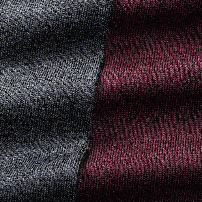 ・こちらは製品染めではあるものの、先染めのような品のよい発色が特徴。ベーシックカラーから挿し色まで全6色(ブラック/グレージュダークパープル/ダークネイビー)のラインナップ。