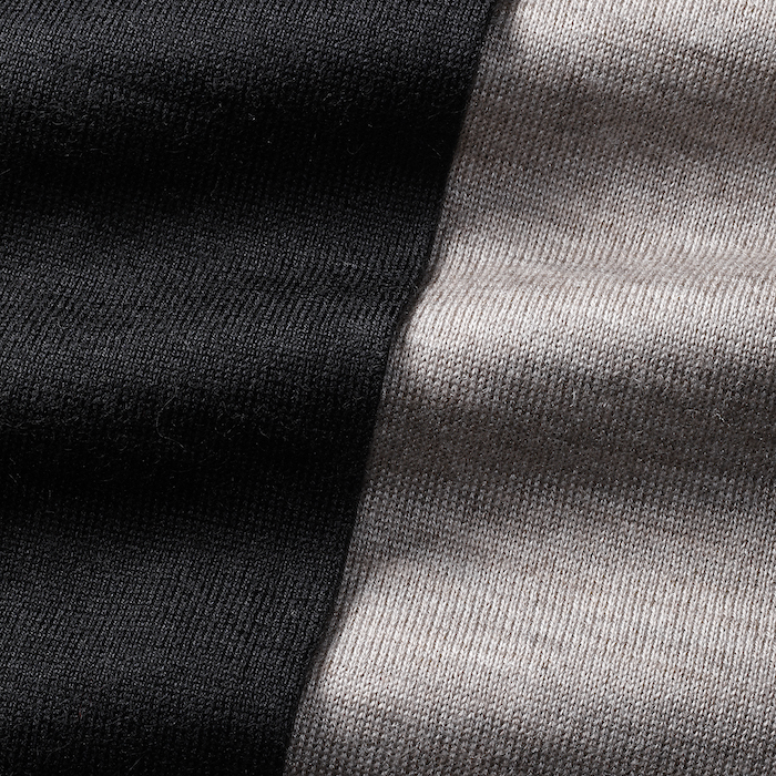 ・カシミア70%、シルク30%の極細糸を使用したハイゲージニットシリーズはB.R.SHOPでは毎シーズン欠かせないアイテムの一つです。スベスベした手触りとトロトロの肌触りは驚愕モノ!パッと見でも上質さが分かるほどの圧巻クオリティです。