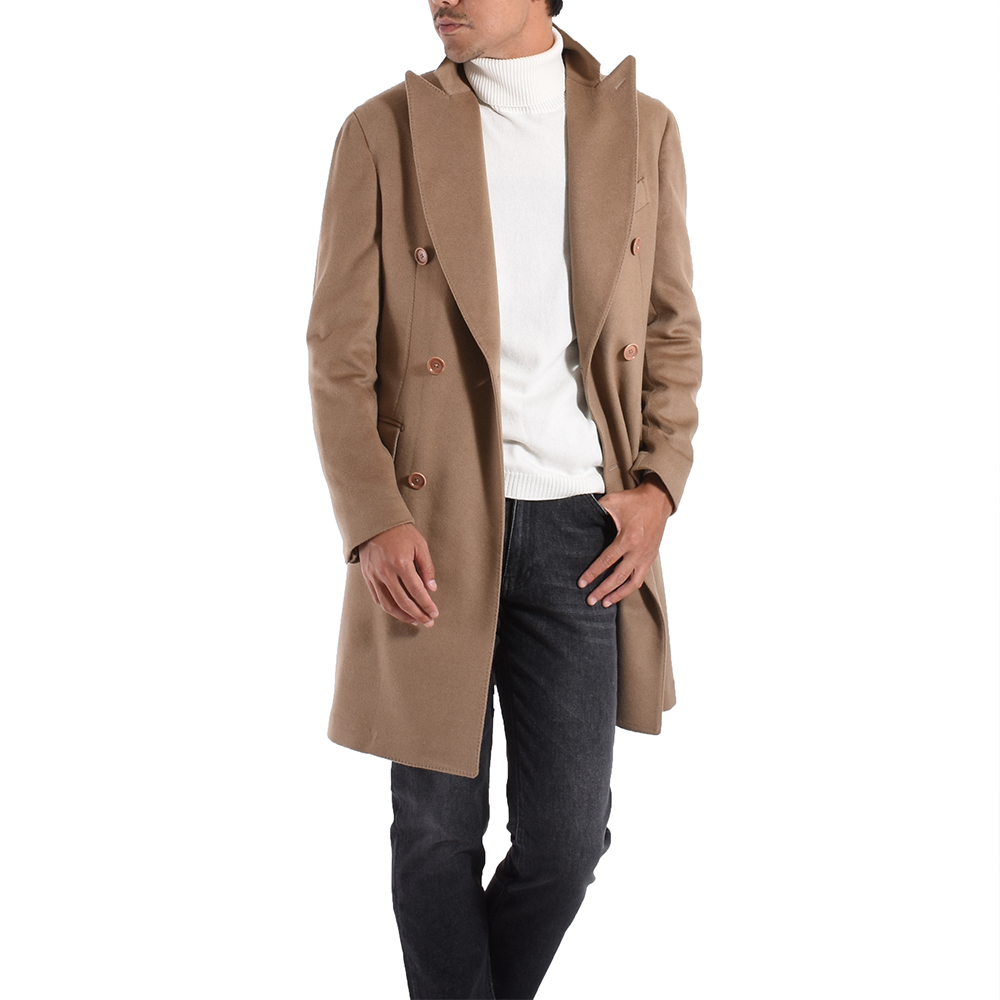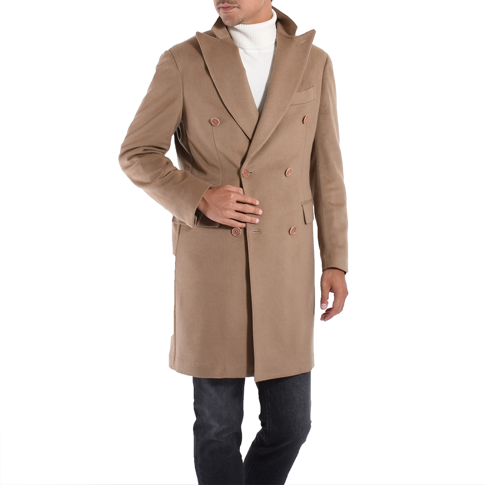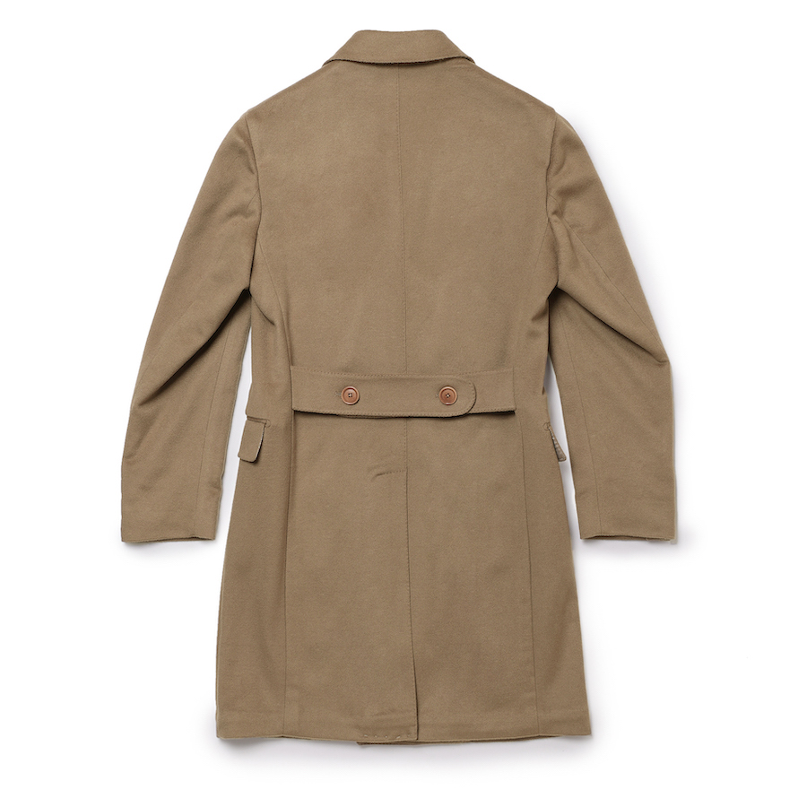 ・ナポリらしいグラマラスな襟が特徴的な「De Petrillo(デ ペトリロ)」のダブルブレステッドコート。巧みな芯地使いと身体に沿うようなパターンメイクで軽く柔らかな着心地の一着です。また、バックベルト付きでクラシカルな要素が入っており、やや高めの位置にベルトが付いた後ろ姿はすっきりとバランス良く見せるというモダンさも兼ね備えています。