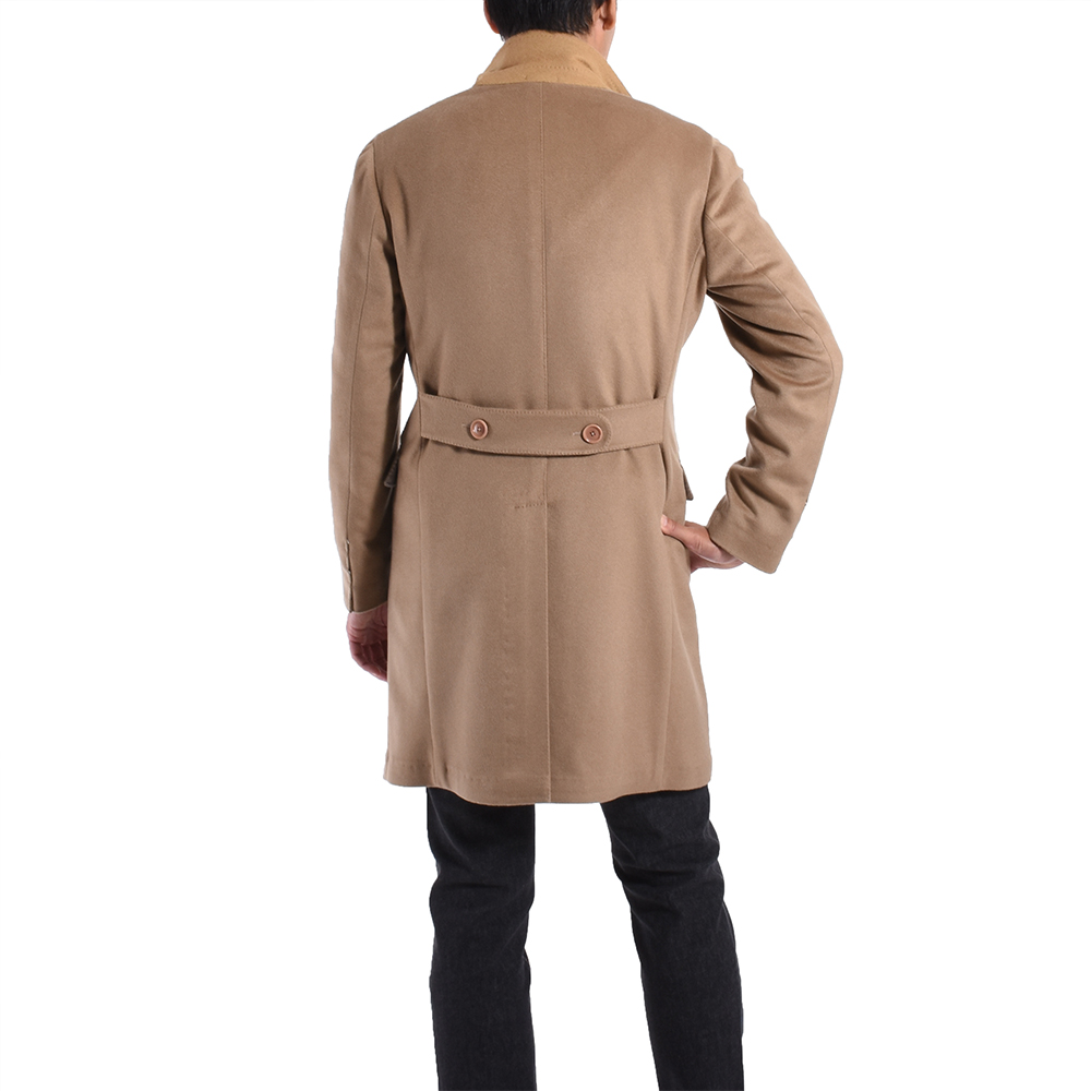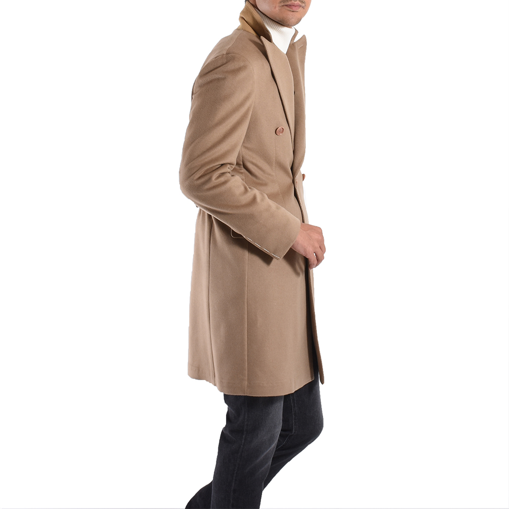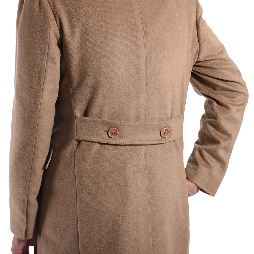 ・深めのベントは動きやすく、着る人をスタイリッシュに見せてくれます。また、膝くらいまでをしっかりカバーする着丈によってカシミア生地ならではのドレープ感も楽しめます。