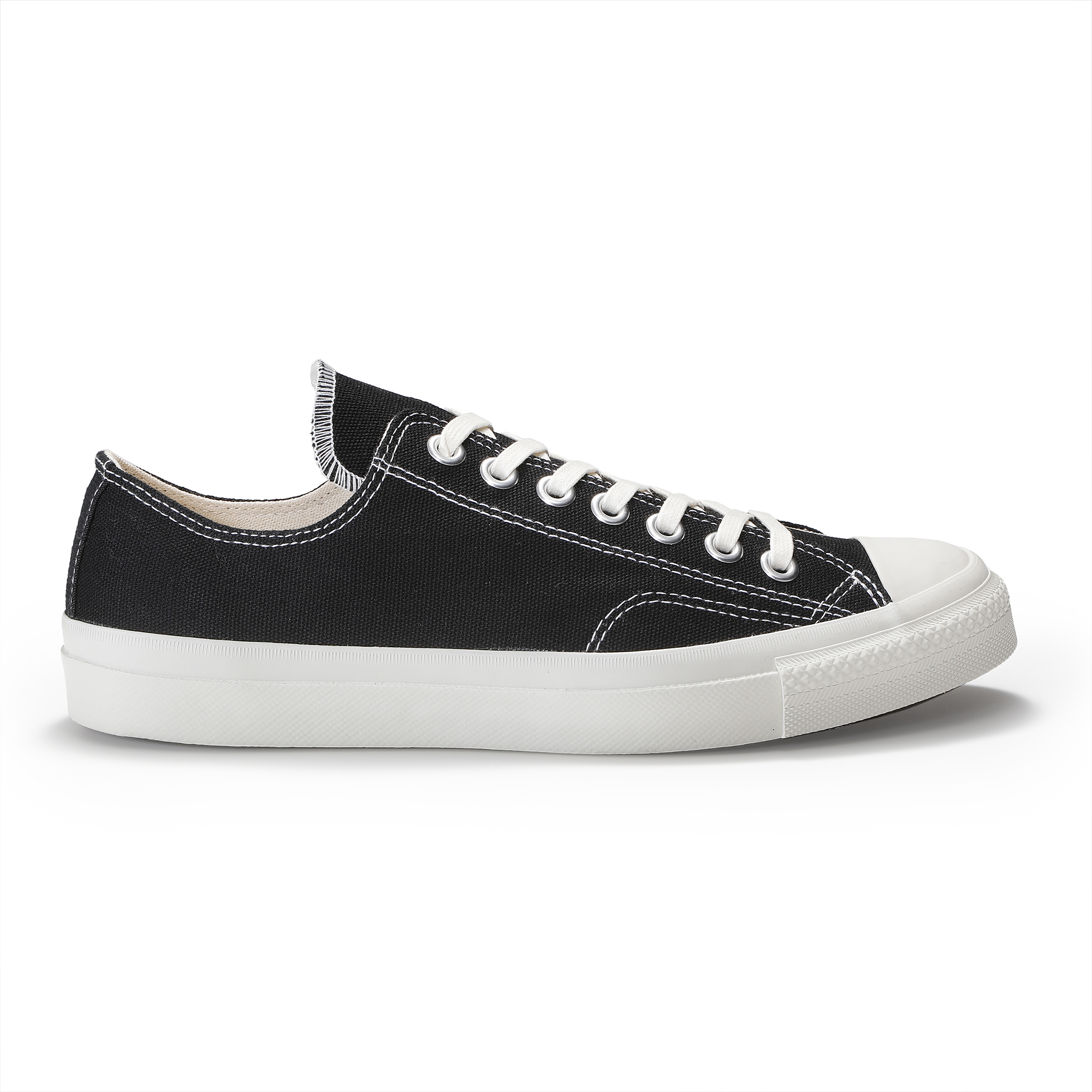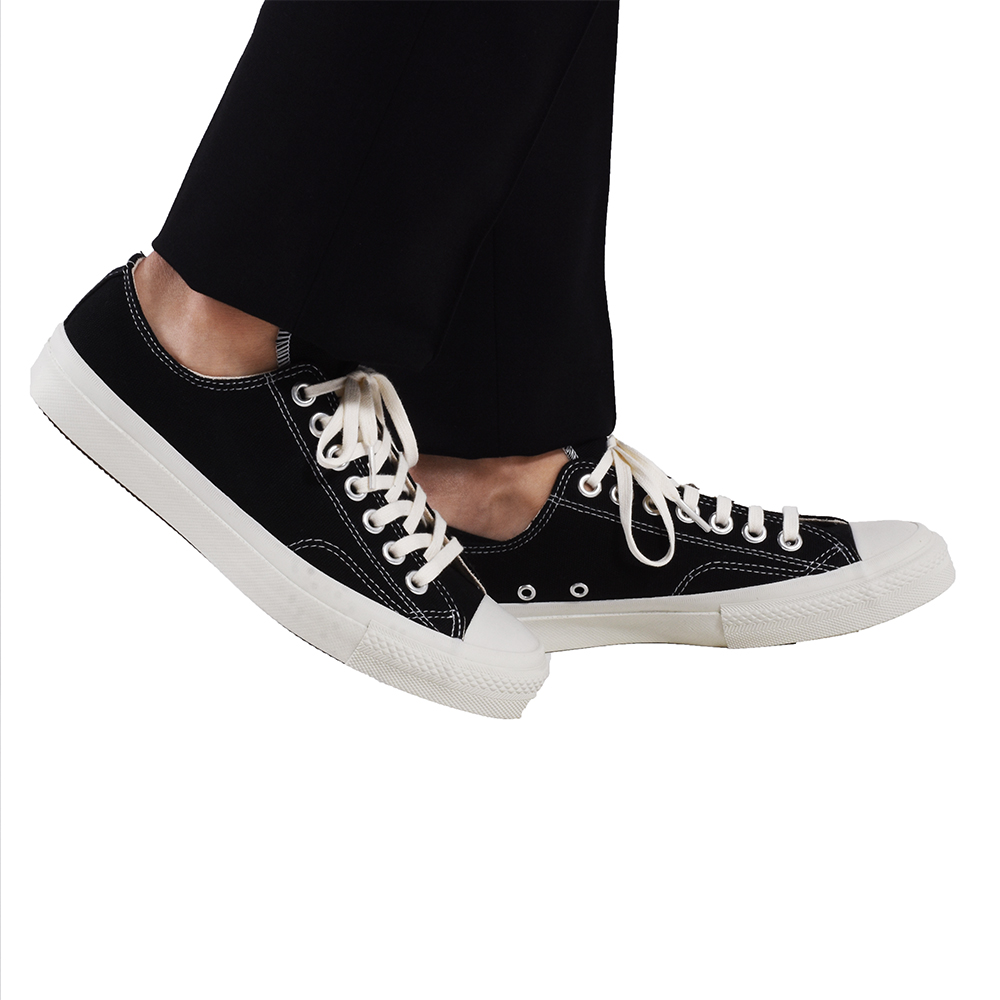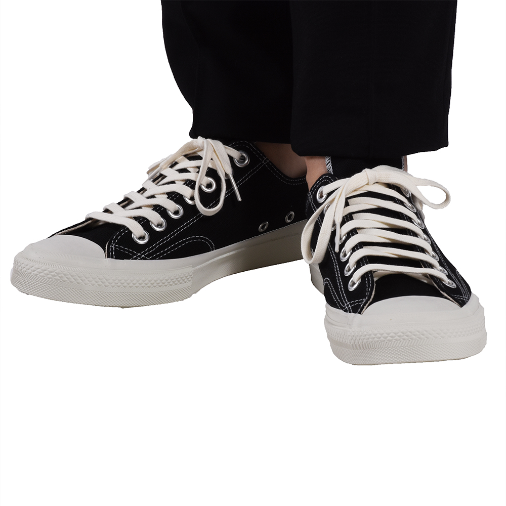 ・12オンスのキャンバスアッパー、底面の意匠、踵のテープ、ライニングに当て布がされたサイドステッチ、アッパーとライニングを接着しないルーズライニング、といった細かい部分に渡り、当時の仕様を再現しながらも、インソールにクッション性の高いインソールを使用するなど現代的にアップデートした一足に仕上げられています。