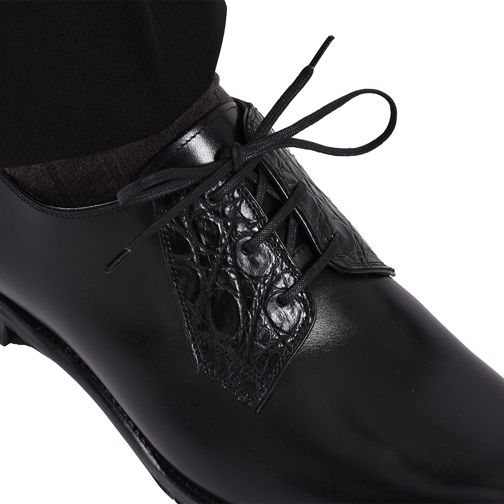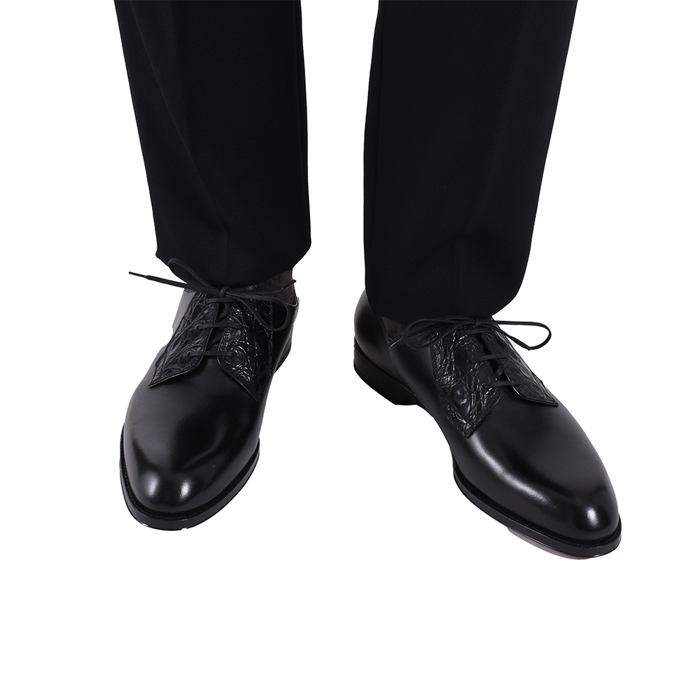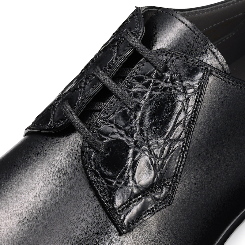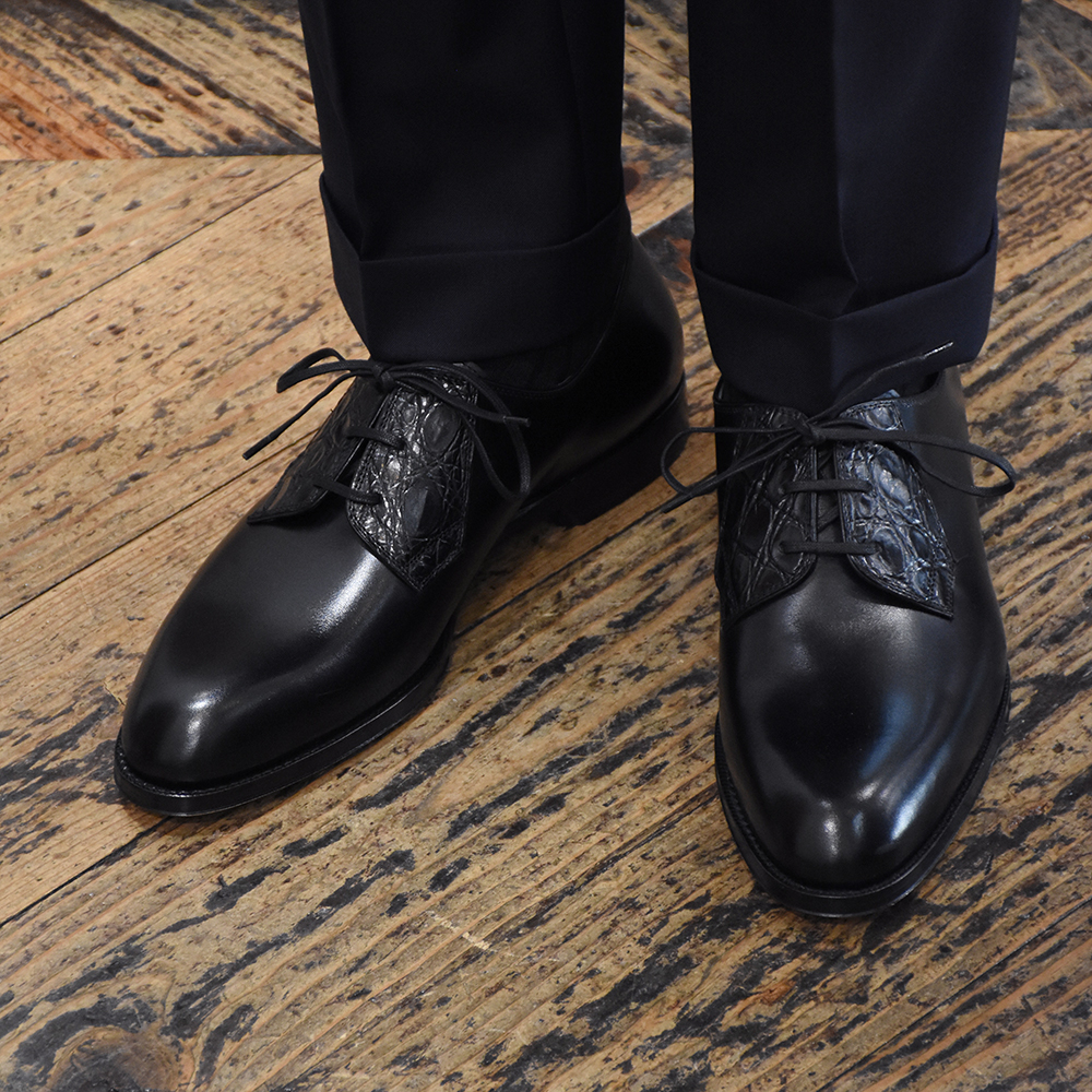・特徴は、カーフレザーにクロコ型押しの羽根が組み合わされたデザイン。足元に高級感とさりげない存在感を演出してくれます。カジュアルはもちろんの事、モダンなドレススタイルからモードまでこなせる振り幅の広さも魅力の一つです。