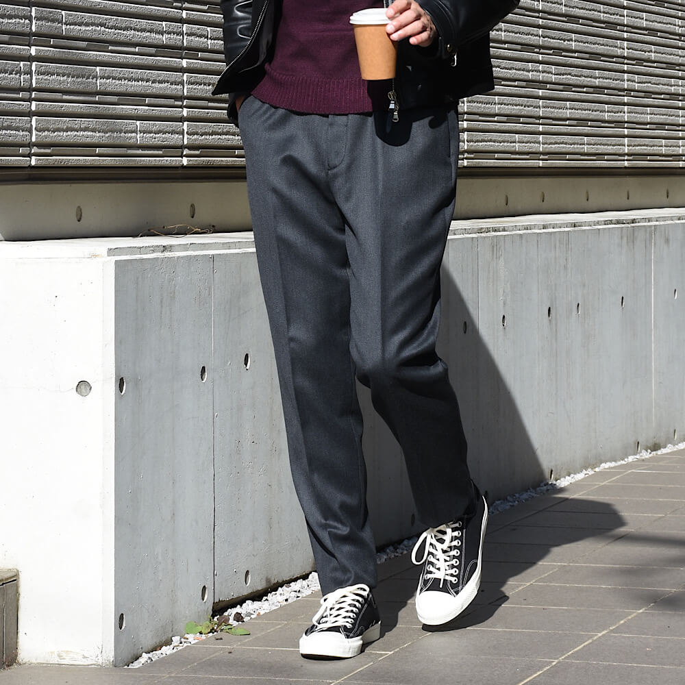 ・”tapered”モデルは、適度に余裕を持たせた腰とヒップ周りからなだらかにテーパードするシルエット。生地、パターンと縫製の良さによって、真っ直ぐに落ちるセンタークリースラインが秀逸です。ベーシックに穿ける2色をラインナップ。