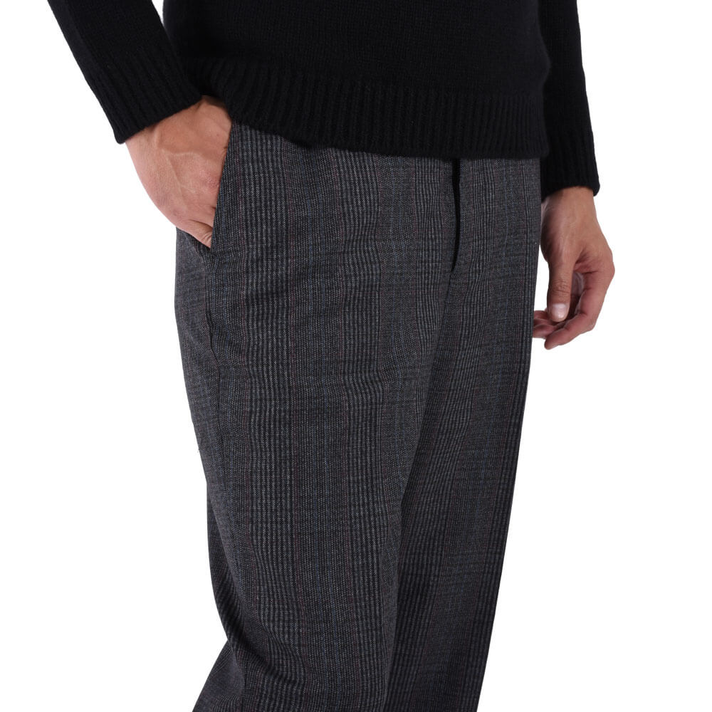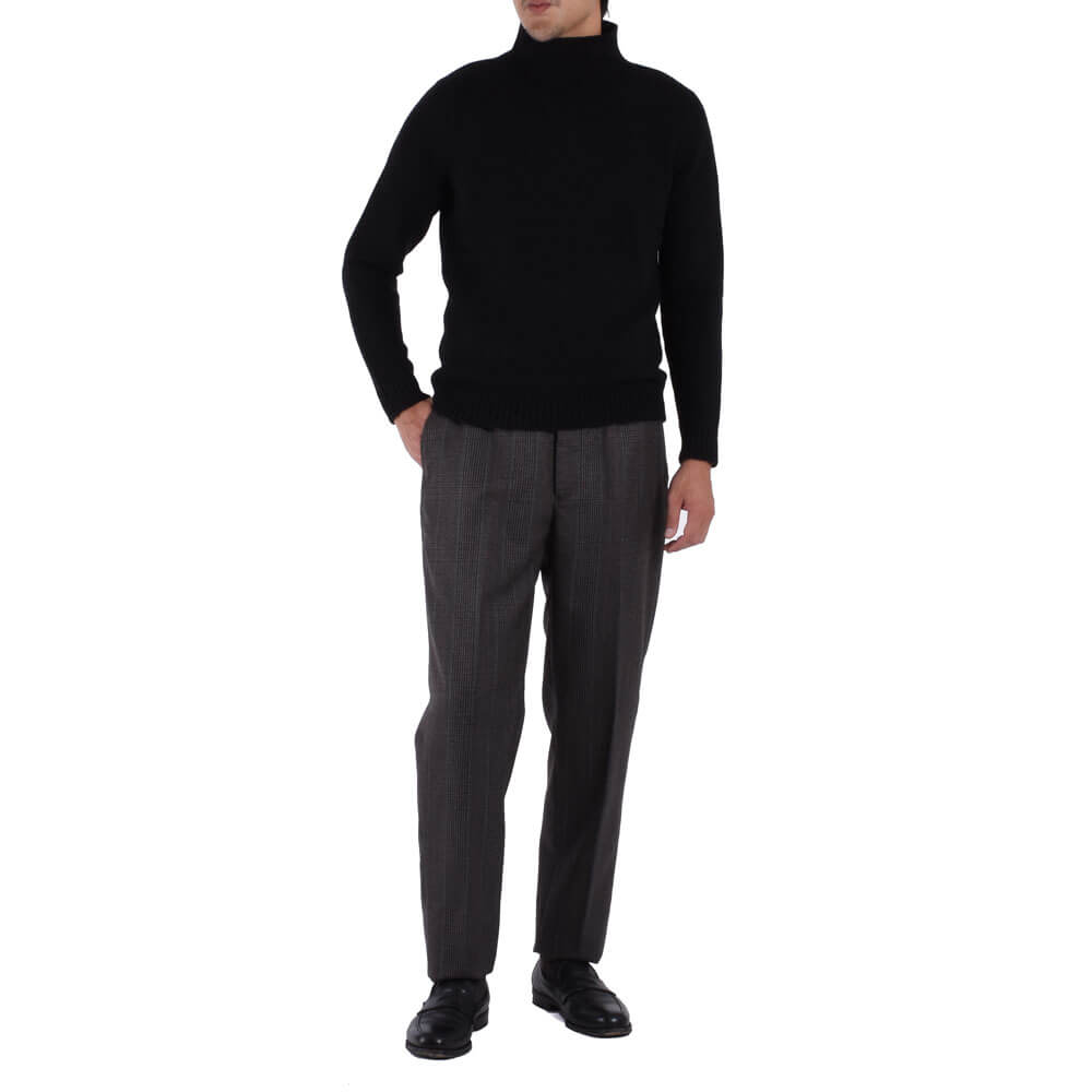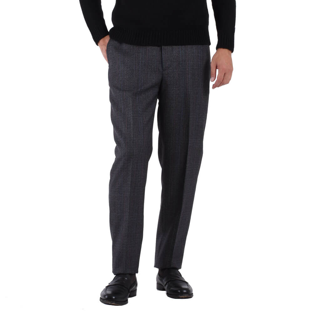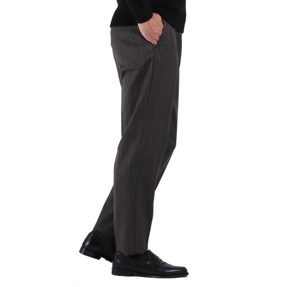 ・生地はウール100%。配色の妙が冴えるチェック柄は、厳選された色の組み合わせで柄を構成した多彩な見え方で実にモダン。密でありながらもハリと弾力の富んだ風合いとドレープ感が相まり、上質さを醸す生地感が特徴的です。