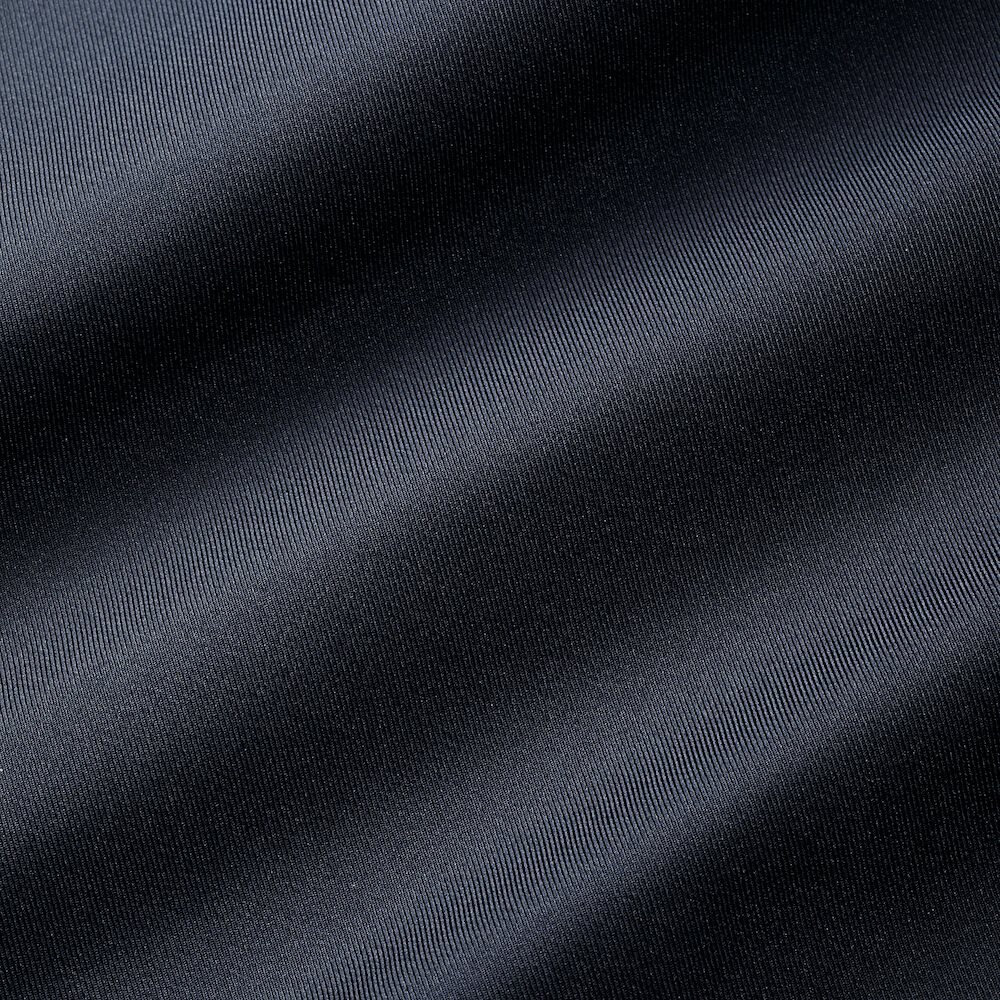 ・シェルには撥水加工がされた形状安定ポリエステルを採用。綾織りのギャバジンでシワになりにくく汚れも付きづらいという機能性を持っています。