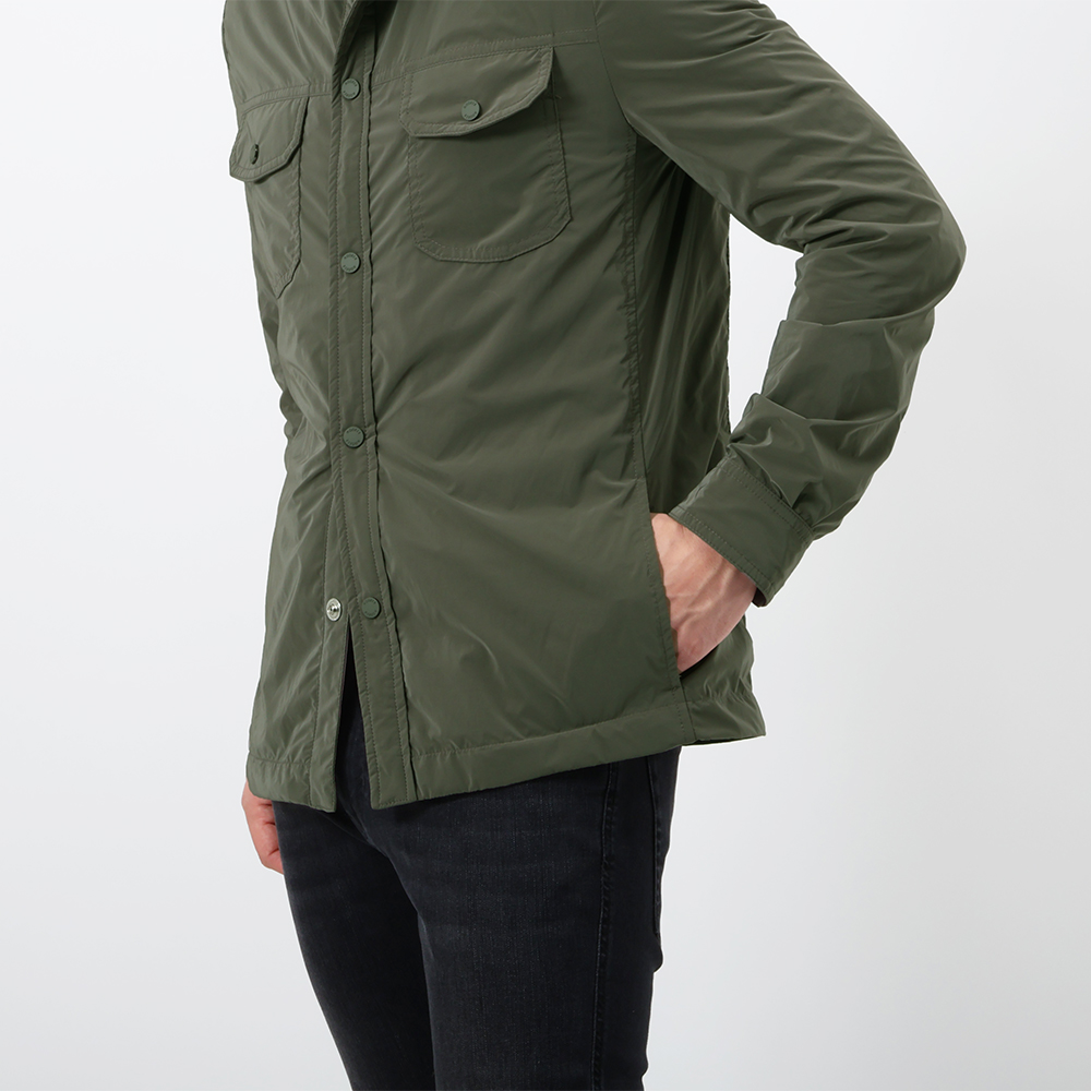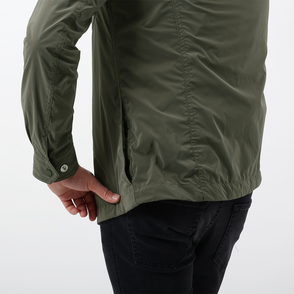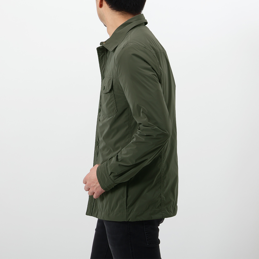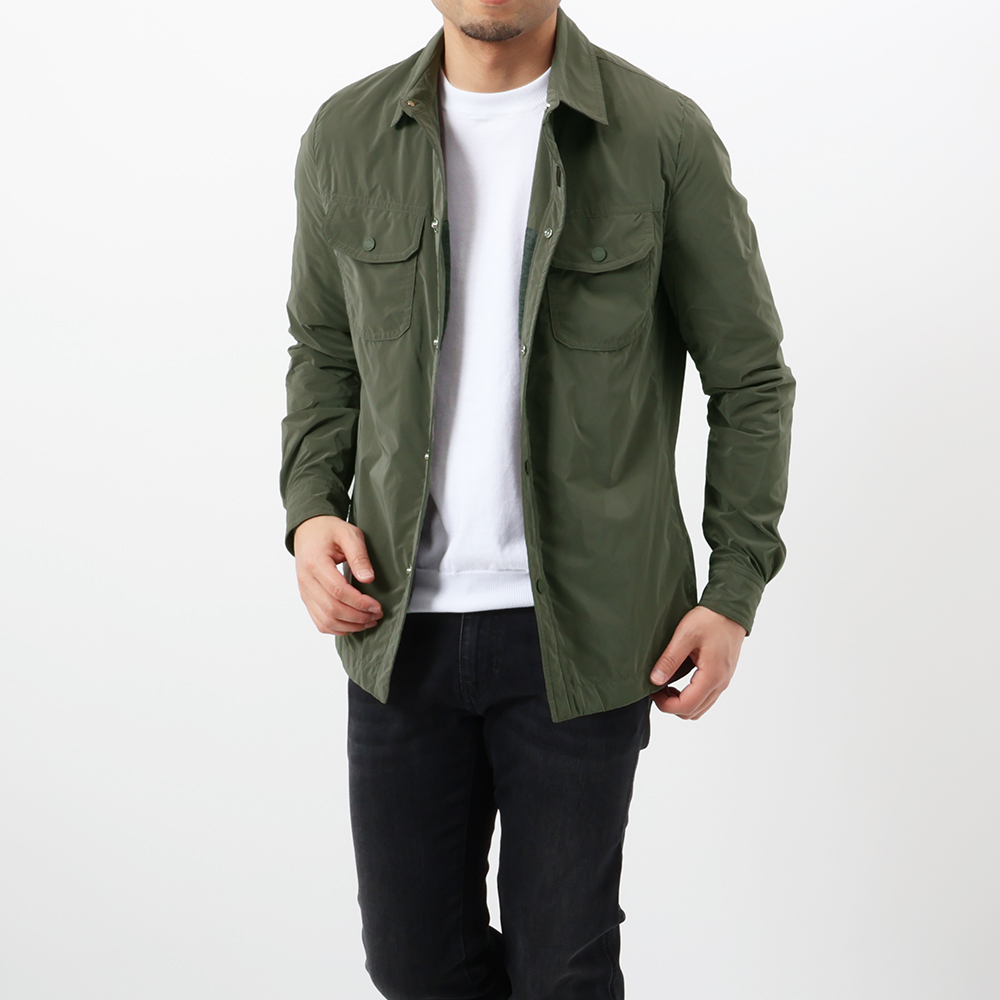 ・形はシンプルなシャツタイプブルゾン。立てても大袈裟にならない絶妙な襟の大きさ、二つのフラップ付き胸ポケット、腰ポケットはマグネット開閉式で物を入れても安心な仕様です。