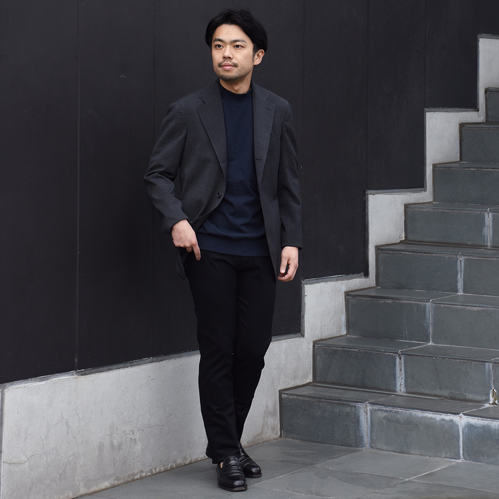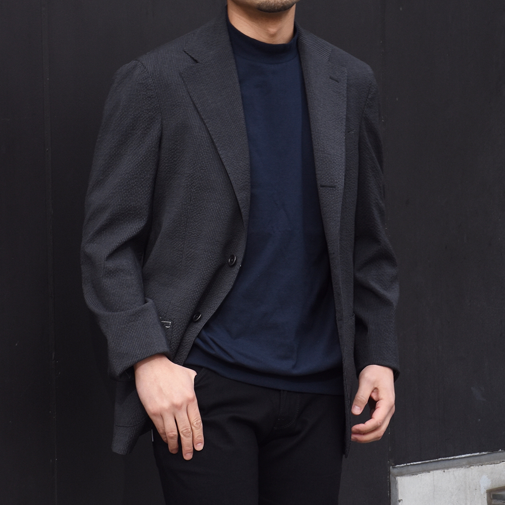 ・ネックがほんのり高いモックネックはジャケットやアウターを着る際の強い味方。汚れ移りを防ぎます。もちろん一枚で着てもさりげなく洒落っ気を醸すアイテムです。