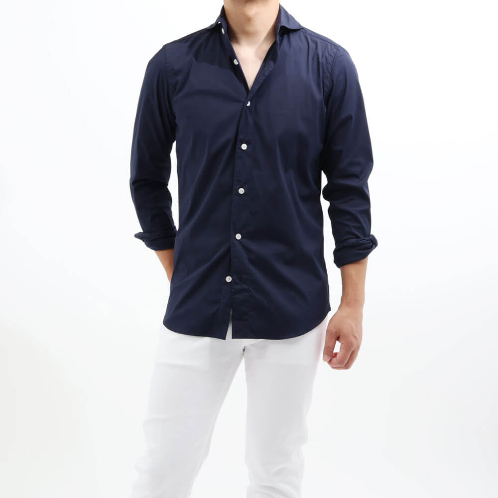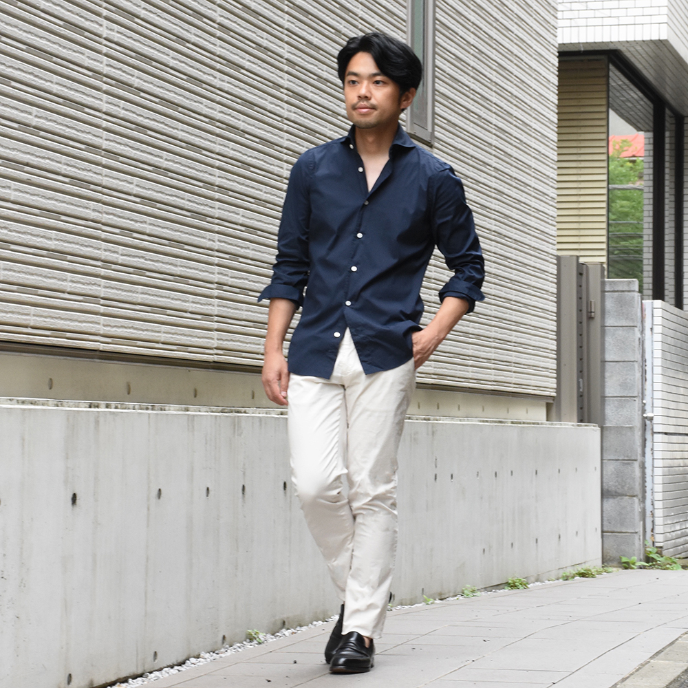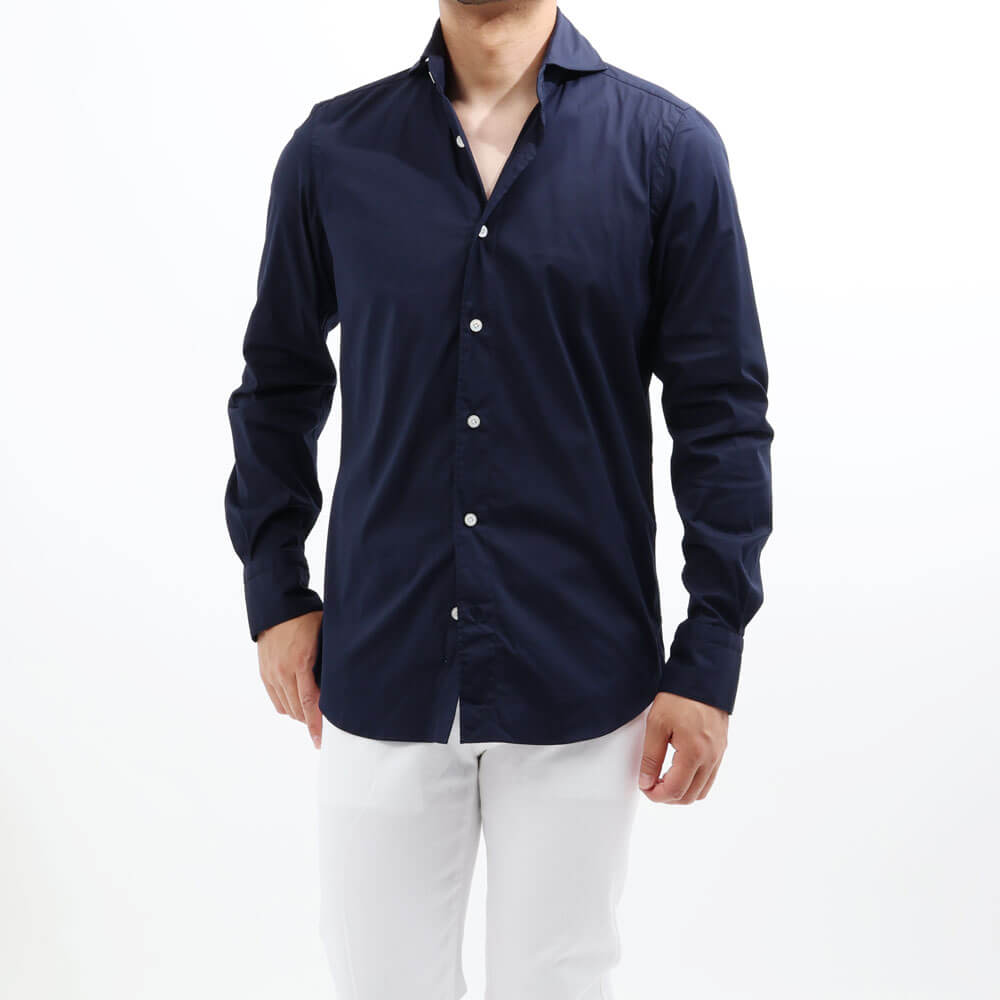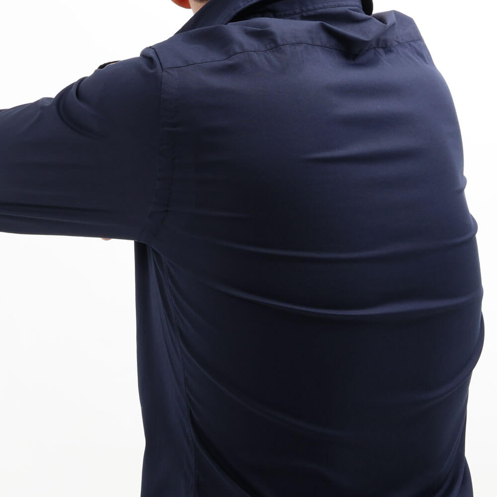 ・狭めな肩幅が特徴的な「Finamore (フィナモレ)」のシャツは、その肩幅からは想像も出来ないほど動き易く、フィット感に長けています。その秘密はいせ込み+前ふりの袖付け。フィット感はありながら、身体にまったくストレスを与えず、極上の着心地です。