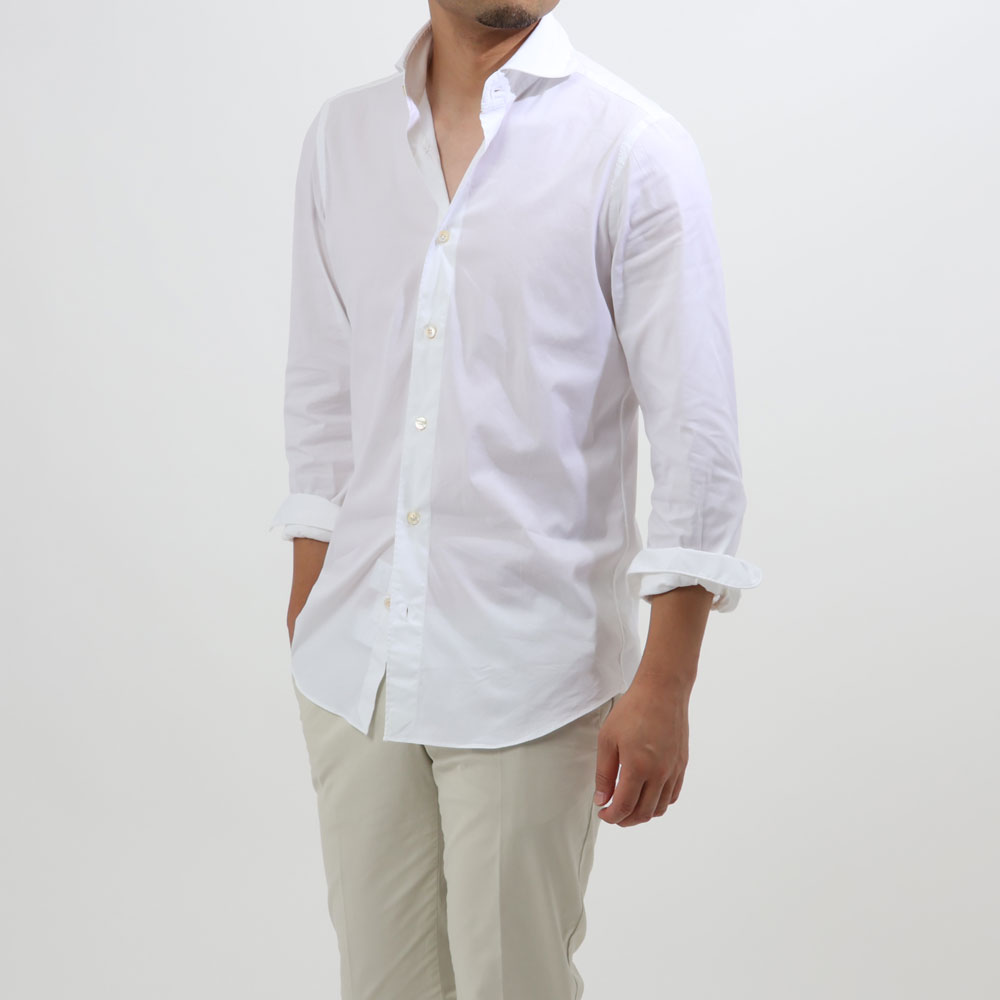 フィナモレ / ストレッチ コットン カッタウェイカラー シャツ/C0643