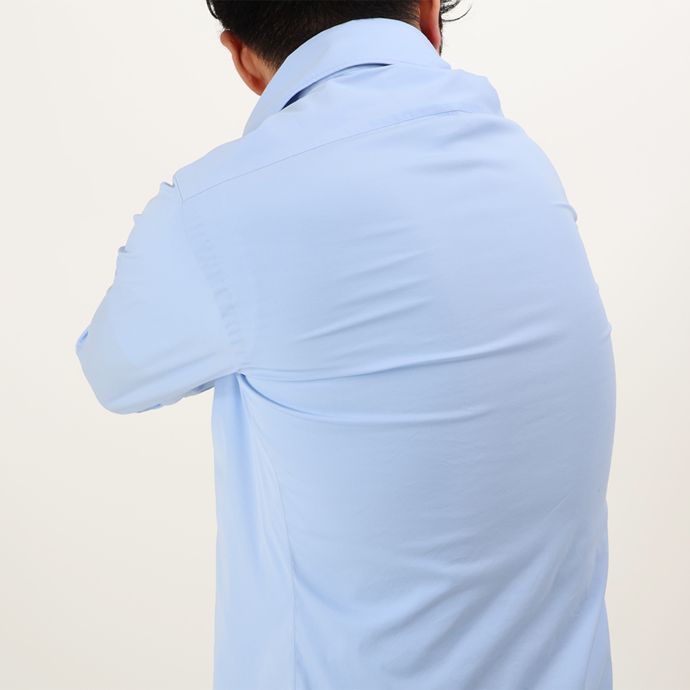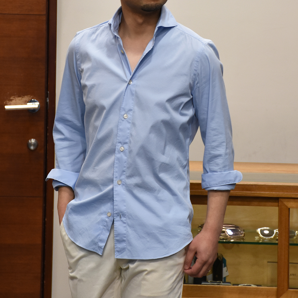 ・狭めな肩幅が特徴的な「Finamore (フィナモレ)」のシャツは、その肩幅からは想像も出来ないほど動き易く、フィット感に長けています。その秘密はいせ込み+前ふりの袖付け。フィット感はありながら、身体にまったくストレスを与えず、極上の着心地です。