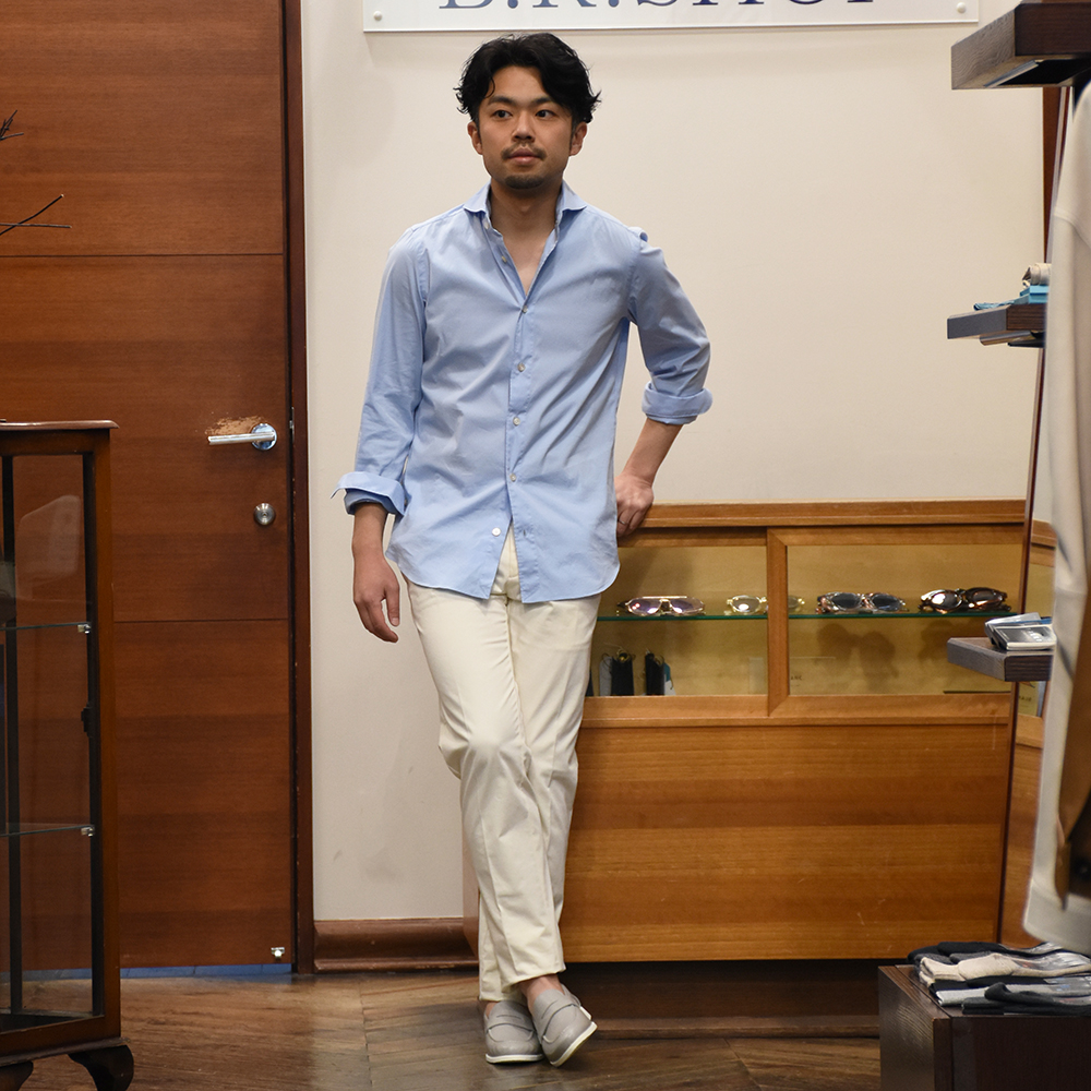 ・しっかりと高さある襟腰と大きく開いた襟が特徴で、これぞイタリアな雰囲気を醸す襟型が"SERGIO(セルジオ)"。大人も着られるカジュアルな襟型の代表格。こなれ感が漂います。