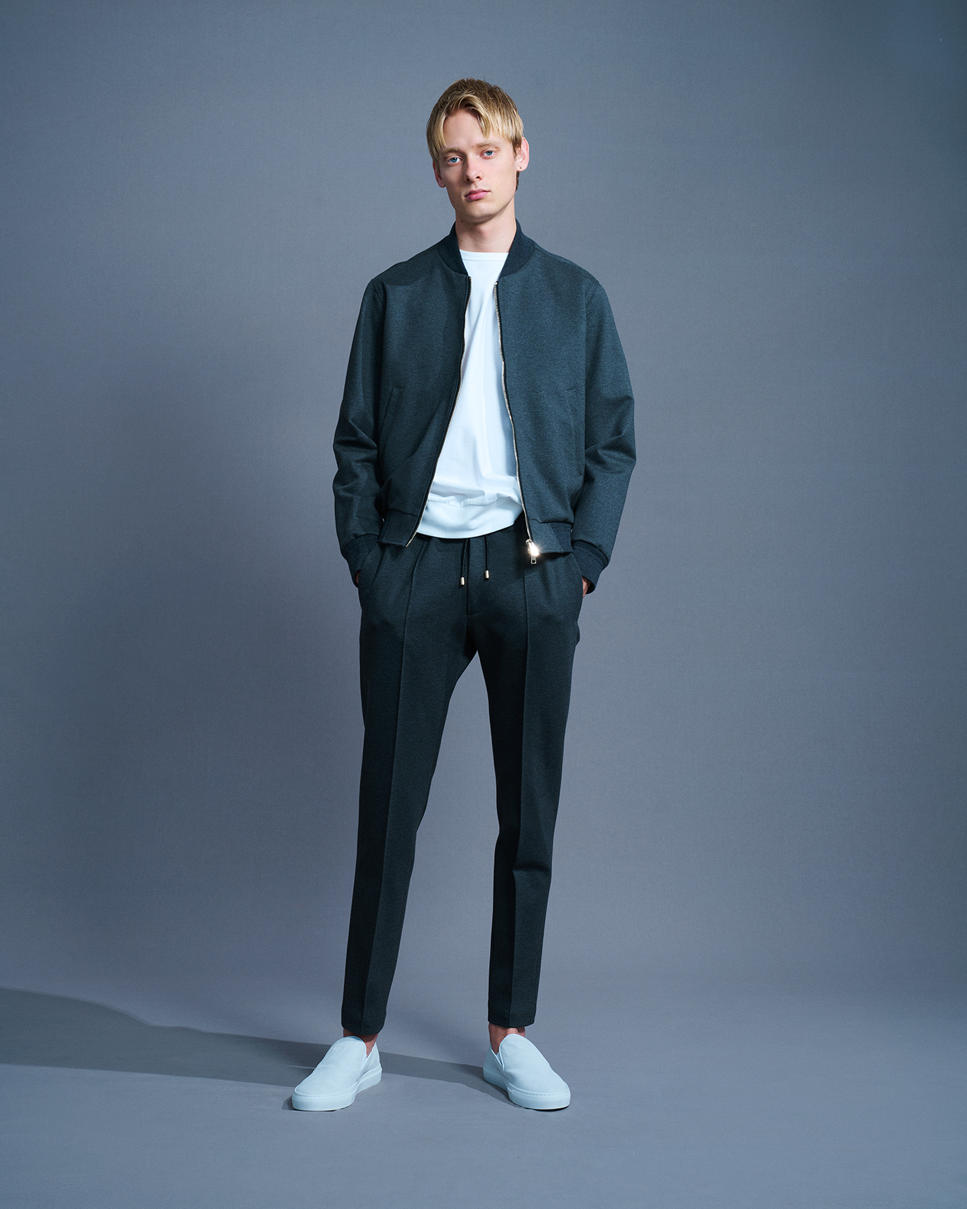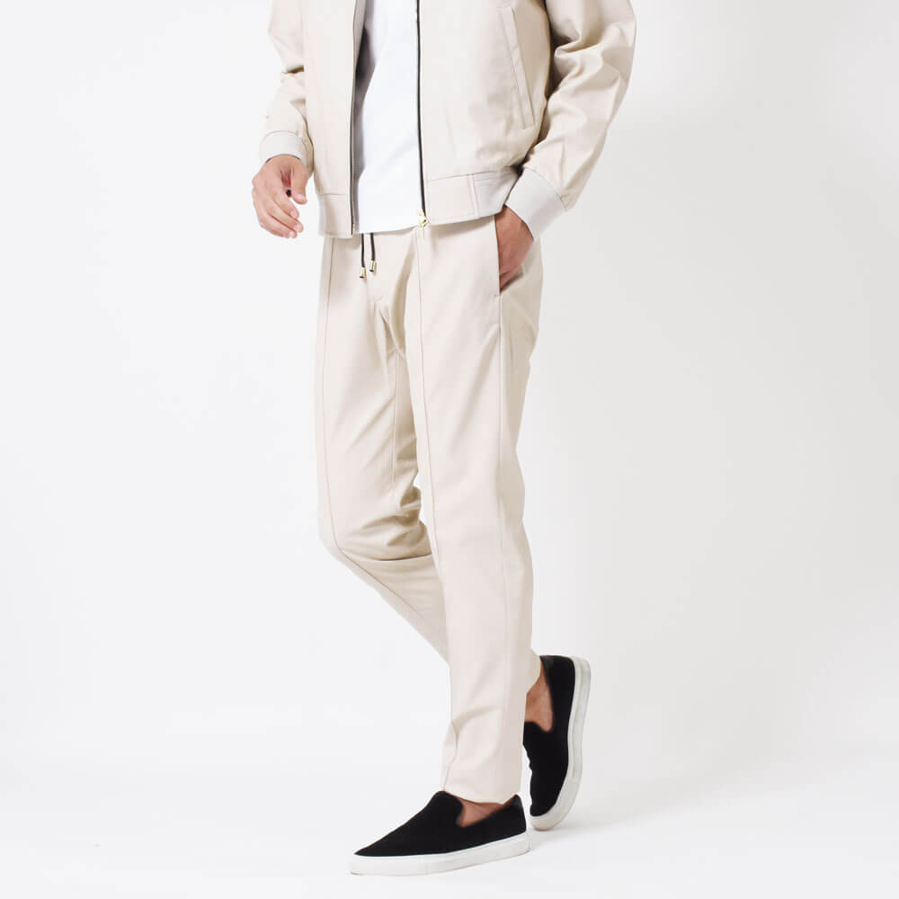・シルエットはスリムテーパード。股上浅めでなだらかに美しくテーパードしていくシルエットは「giabsarchivio(ジャブスアルキヴィオ)」ならでは。モードかつスポーティです。