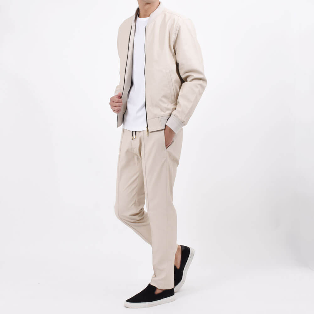 ・弾力性と柔軟性に優れており、ご自宅でのケアが可能です。アイボリーとブラックの2色をラインナップ。セットアップで着られるブルゾン(アイボリー/ブラック)もご用意しています。