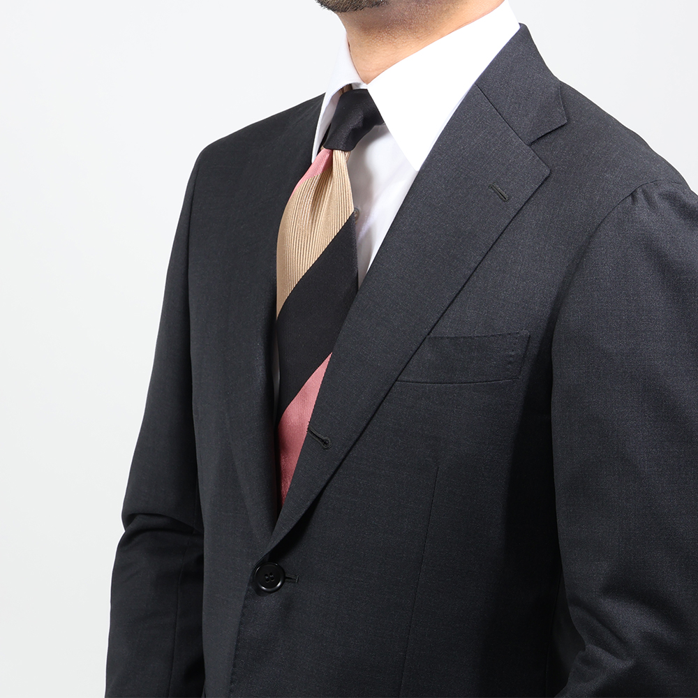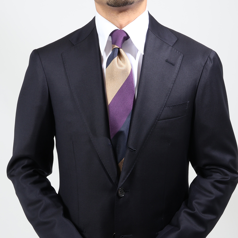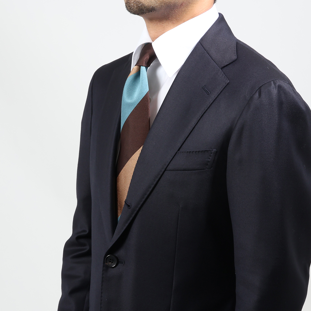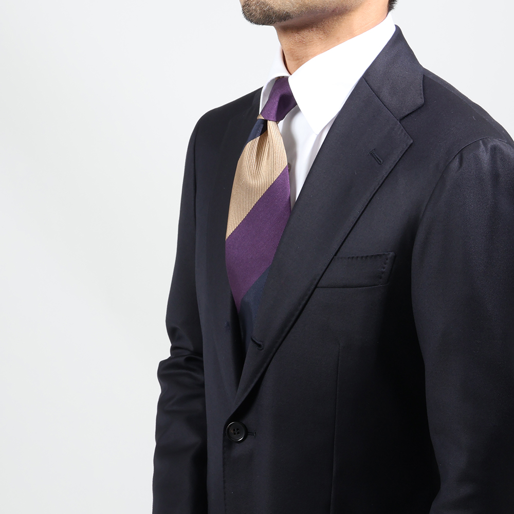 ・配色の妙が光るストライプタイは、組織感の異なる素材をミックスさせることで味わい深い表情の1本に仕上げられています。