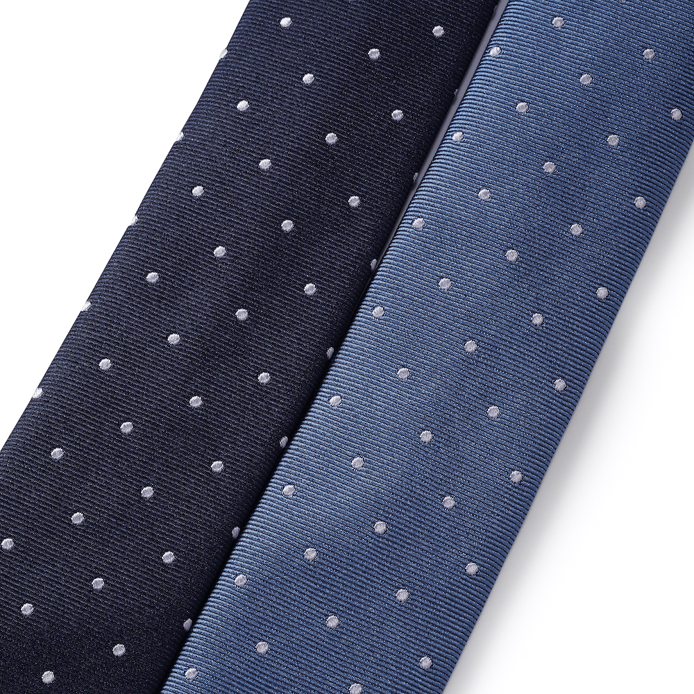 ・プリントよりもエレガントとされるジャカードのドット柄を、ベーシックなブルーとネイビー地でご用意。ドット柄もシンプルなホワイトになります。