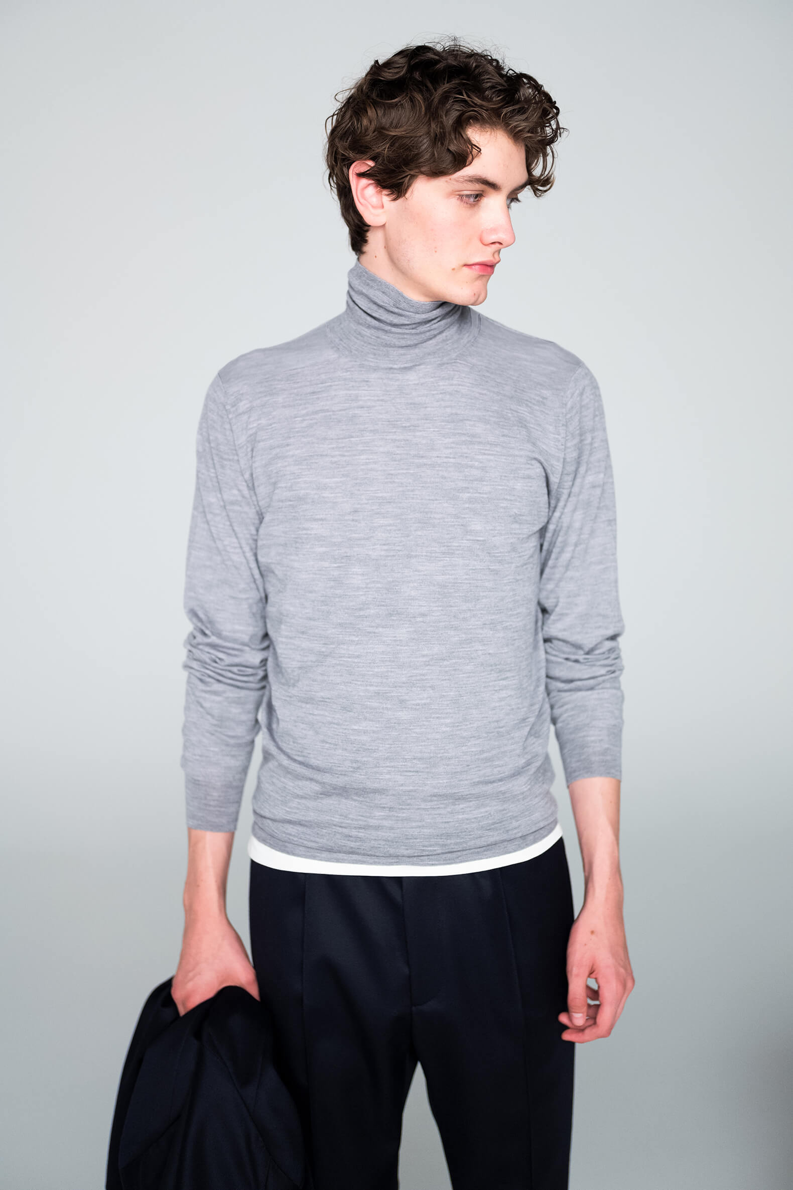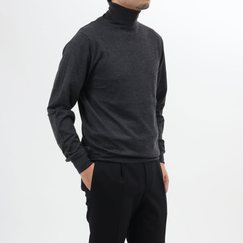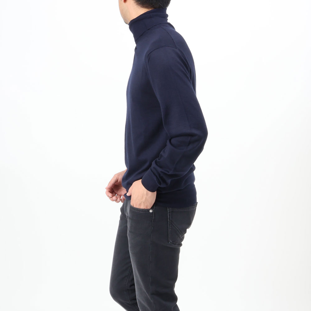 ・秋冬の「FEDELI(フェデリ)」と言えばカシミアですが、3シーズンは優に着られるシルカシニットも充実のラインナップ。ハイゲージゆえ薄くて軽く、温暖化が進む現代において最適解なタートルネックです。