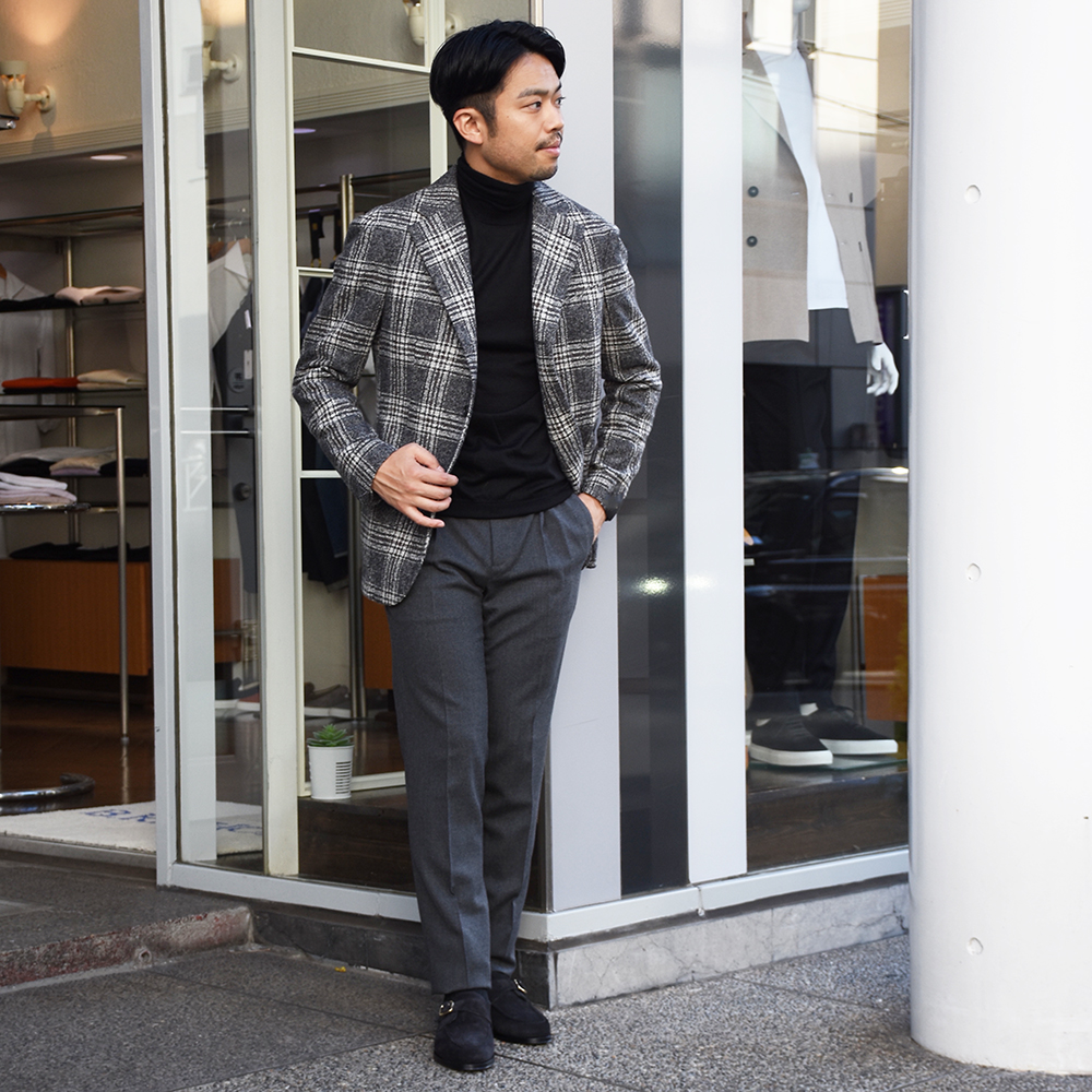 ・カシミア70%、シルク30%の極細糸を使用したハイゲージタートルネックニット。スベスベした手触りとトロトロの肌触りは驚愕モノ!パッと見でも上質さが分かるほどの圧巻クオリティです。