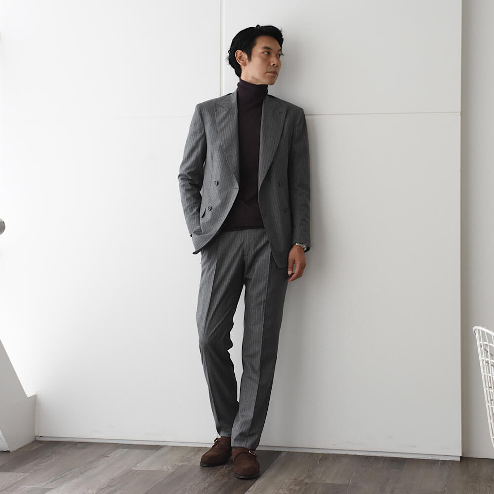 ・カシミア70%、シルク30%の極細糸を使用したハイゲージタートルネックニット。スベスベした手触りとトロトロの肌触りは驚愕モノ!パッと見でも上質さが分かるほどの圧巻クオリティです。