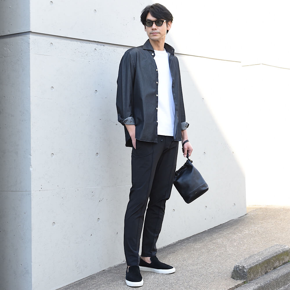 ・生地は適度な厚みのデニムでオールシーズン着用が可能。製品洗い加工により柔らかな風合いが生み出され、着込まなくても最初からこなれた雰囲気を醸します。全2色(グレー)をラインナップ。