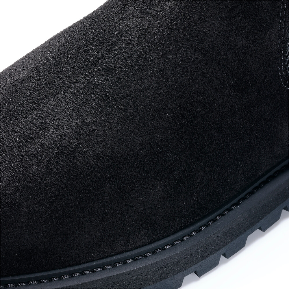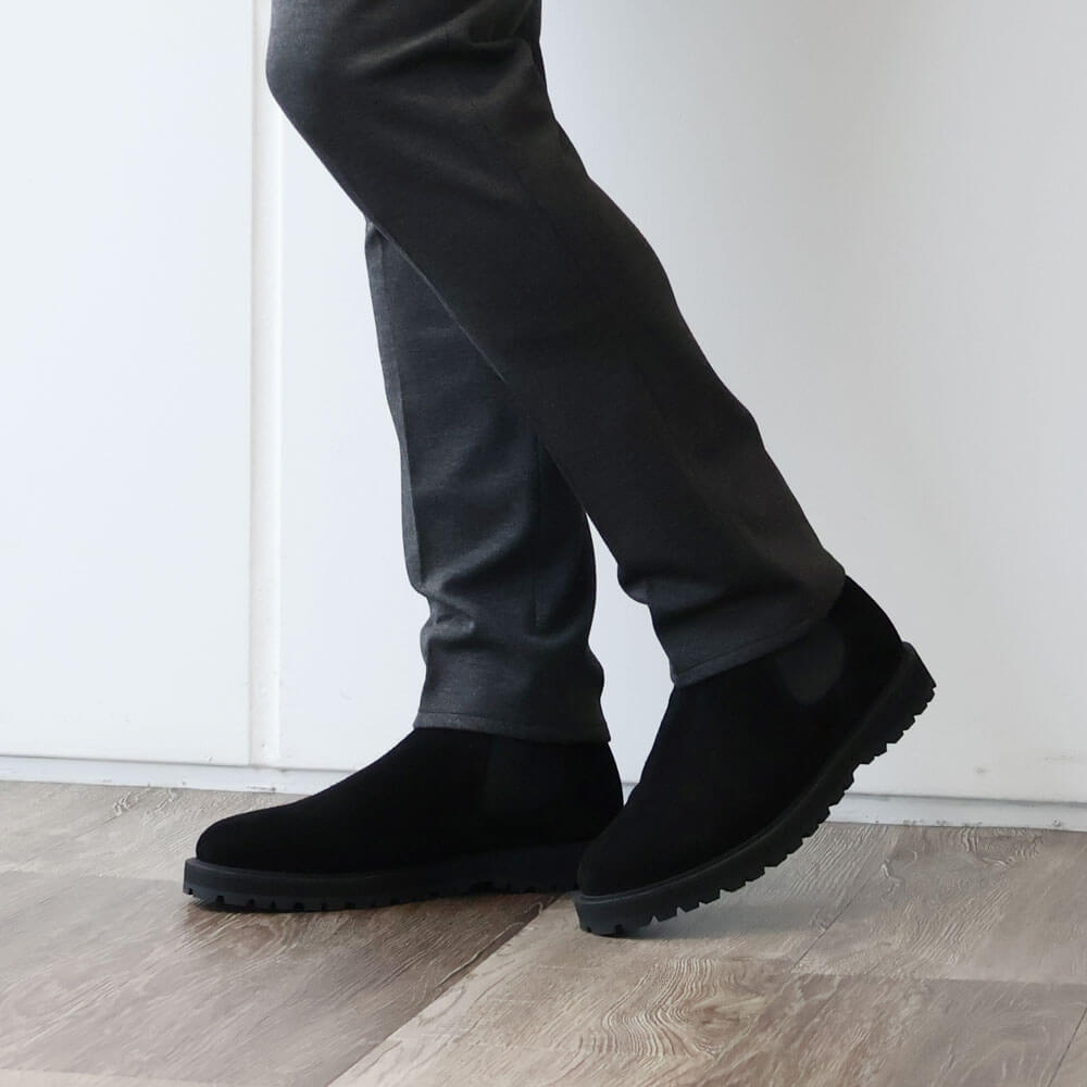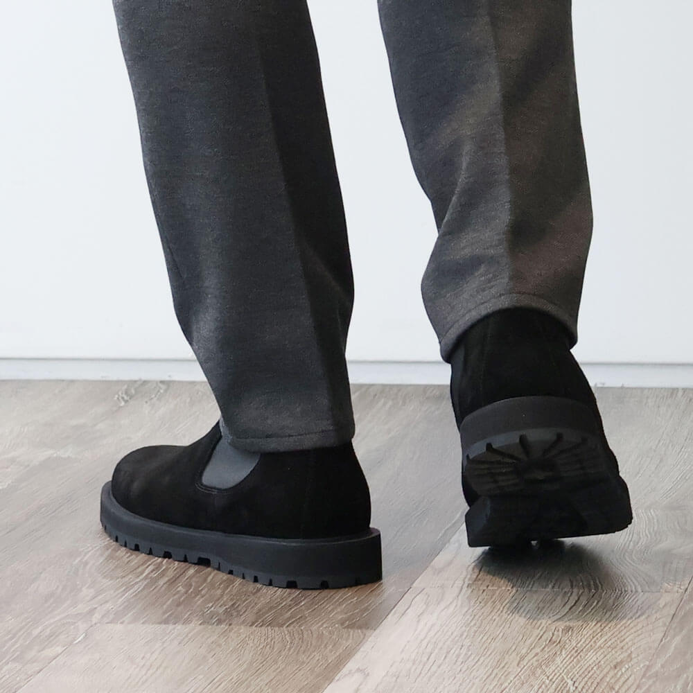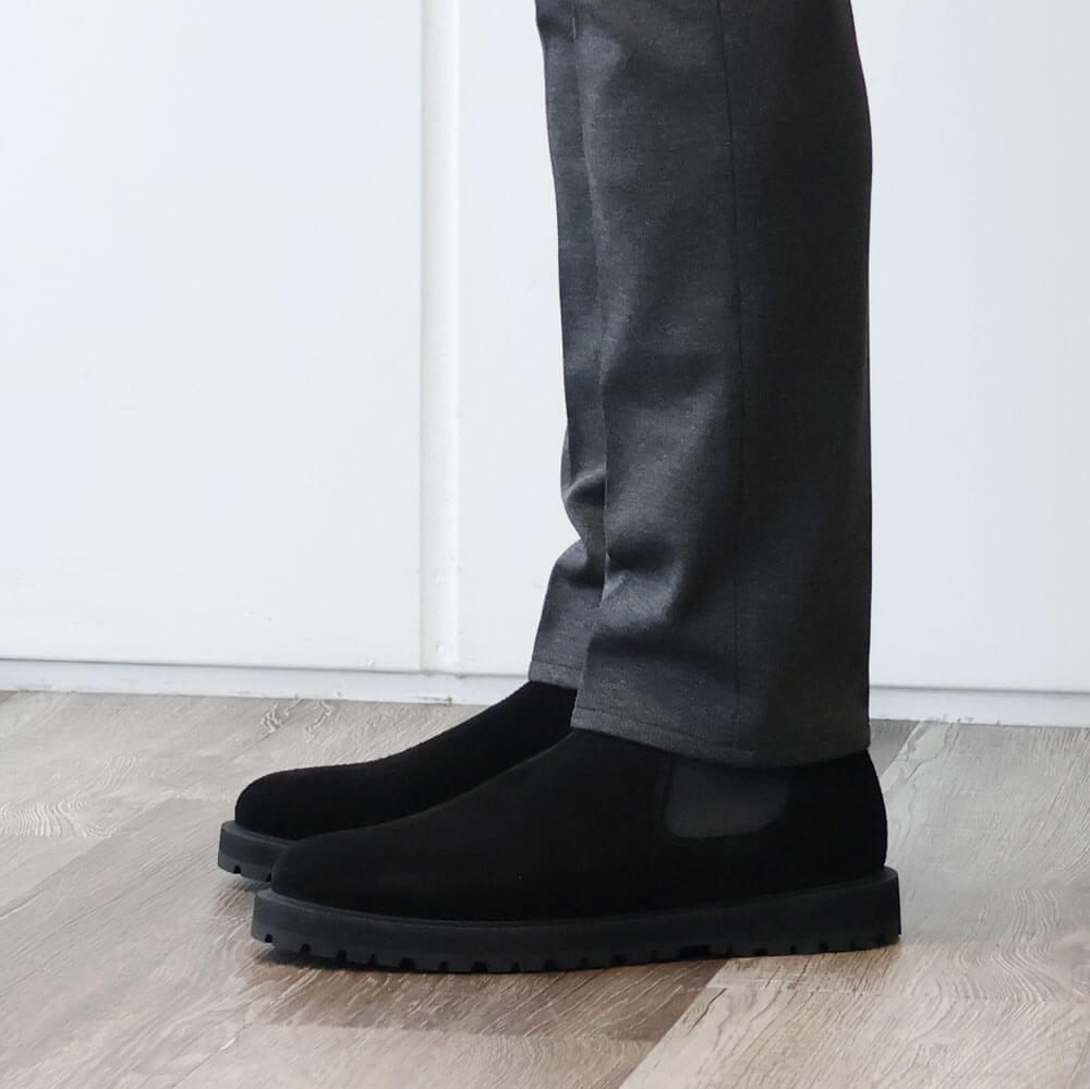 ・サイドゴアブーツの脱ぎ履きのしやすさに大きく関わるシャフト(筒)は、長さ/幅ともに秀逸。フィット感が強過ぎない幅、裾が引っ掛かりづらい長さがあり、プルストラップを備えています。
