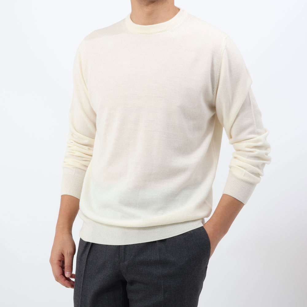 ・こちらは「LORENZONI(ロレンツォー二)」のシグネチャーとなるウォッシャブルウールを使ったクルーネックニットです。