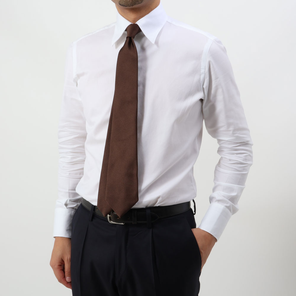・ベーシックなスーツスタイルに必須なサテンとレップ生地のネクタイをオリジナルで制作しました。タッグを組んだのは日本を代表するネクタイ屋である”AINEXX(アイネックス)”。お馴染みの「FRANCO BASSSI(フランコ バッシ)」や「Holiday&Brown(ホリデーアンドブラウン)」といったインポートネクタイの輸入卸しも手掛けるネクタイのプロフェッショナルです。