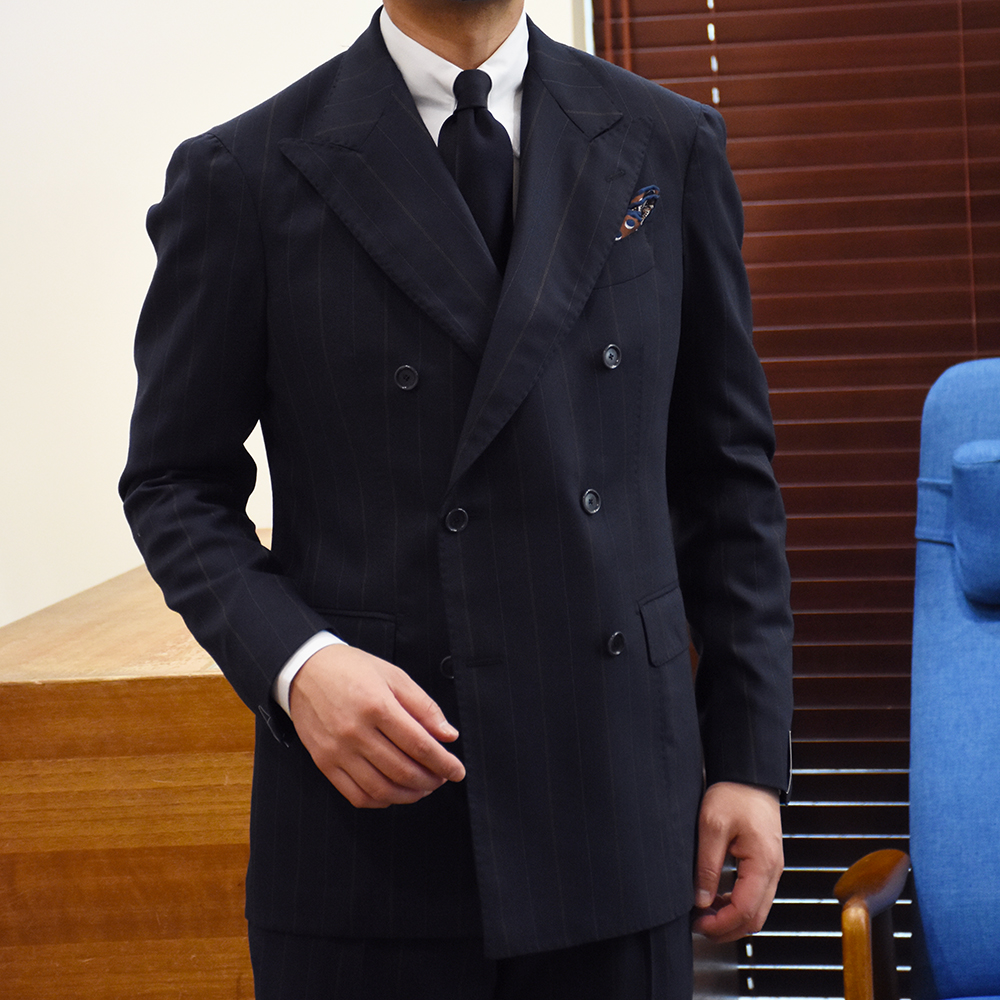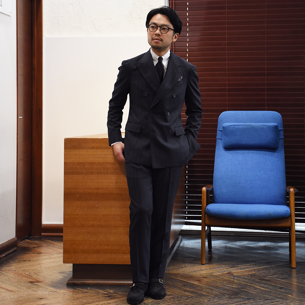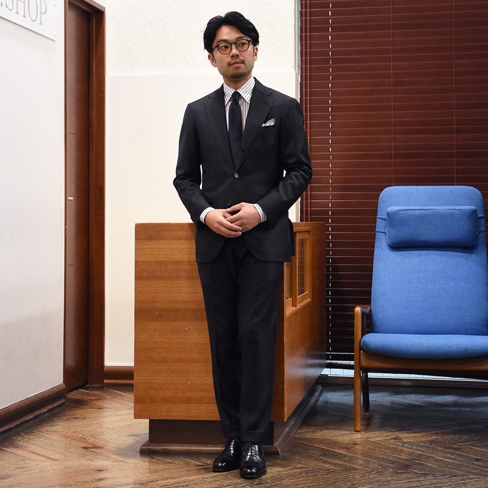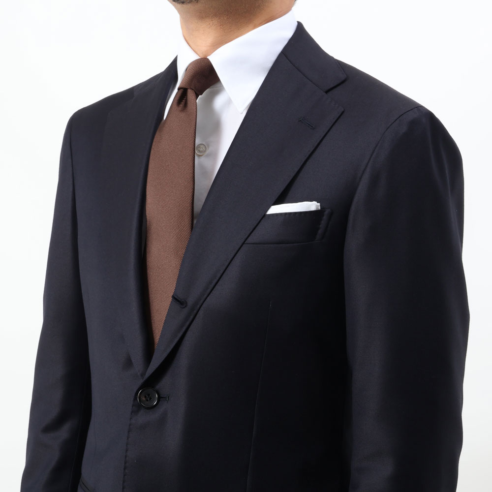 ・高品質なイタリアの生地を使いながらも、日本で縫製することで安定したプライスを実現しました。また、スマートなシルエットのB.R.SHOPオリジナルのスーツ(ダークネイビー/ダークグレー)との相性も抜群。ぜひセットでお試しください。