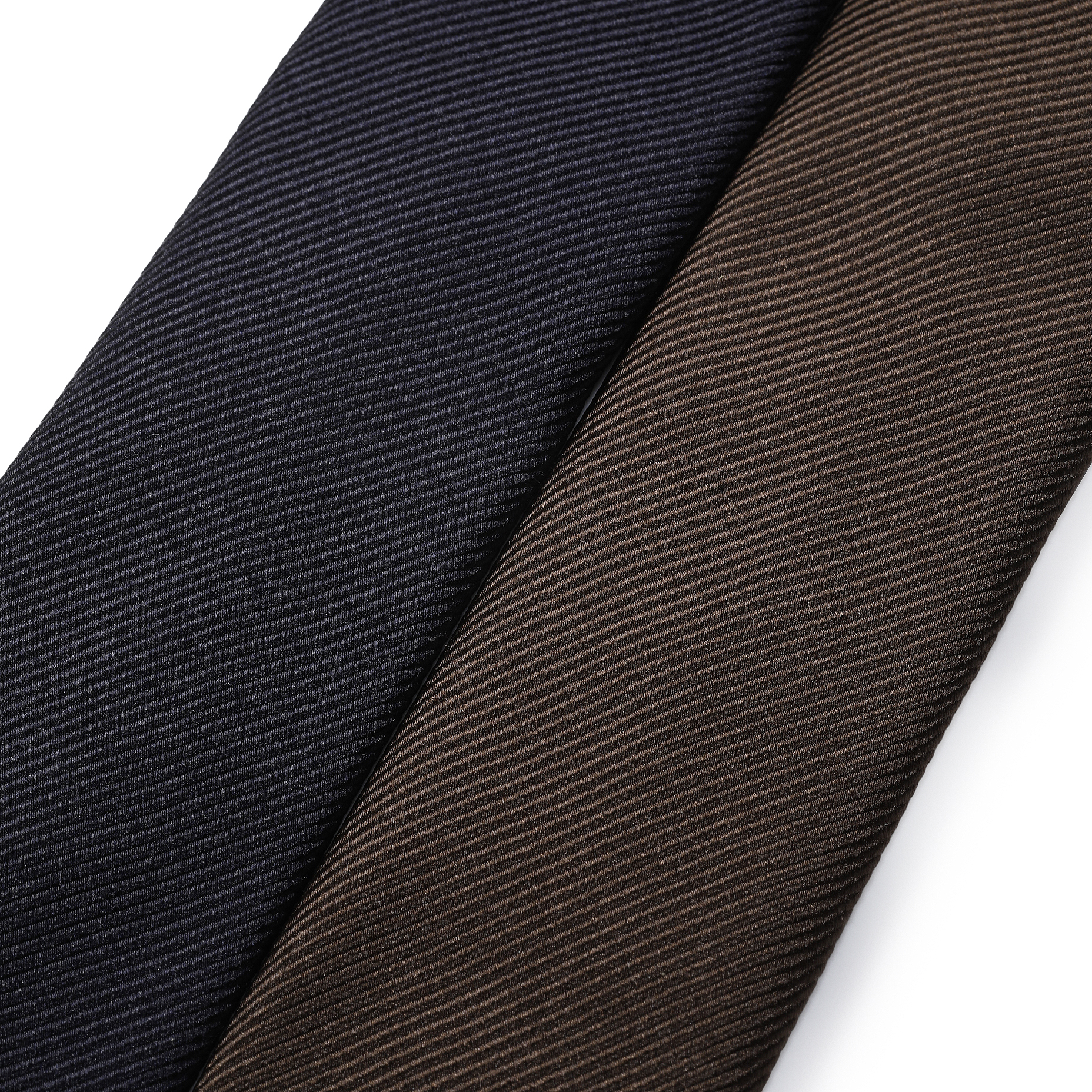 ・見えない箇所ですが締め心地や耐久性に関わる芯地も吟味しました。今回のネクタイに使用しているサテンとレップの生地は共に打ち込みの強い最高品質のもの。その表地に合わせ、芯地も起毛させた一枚芯ではなく、あえて二枚芯にすることで、生地の重厚感に対しふんわりとボリュームのある仕上がりになっています。手に取った際に最高級の素材と仕様のネクタイであると納得頂けるはず。