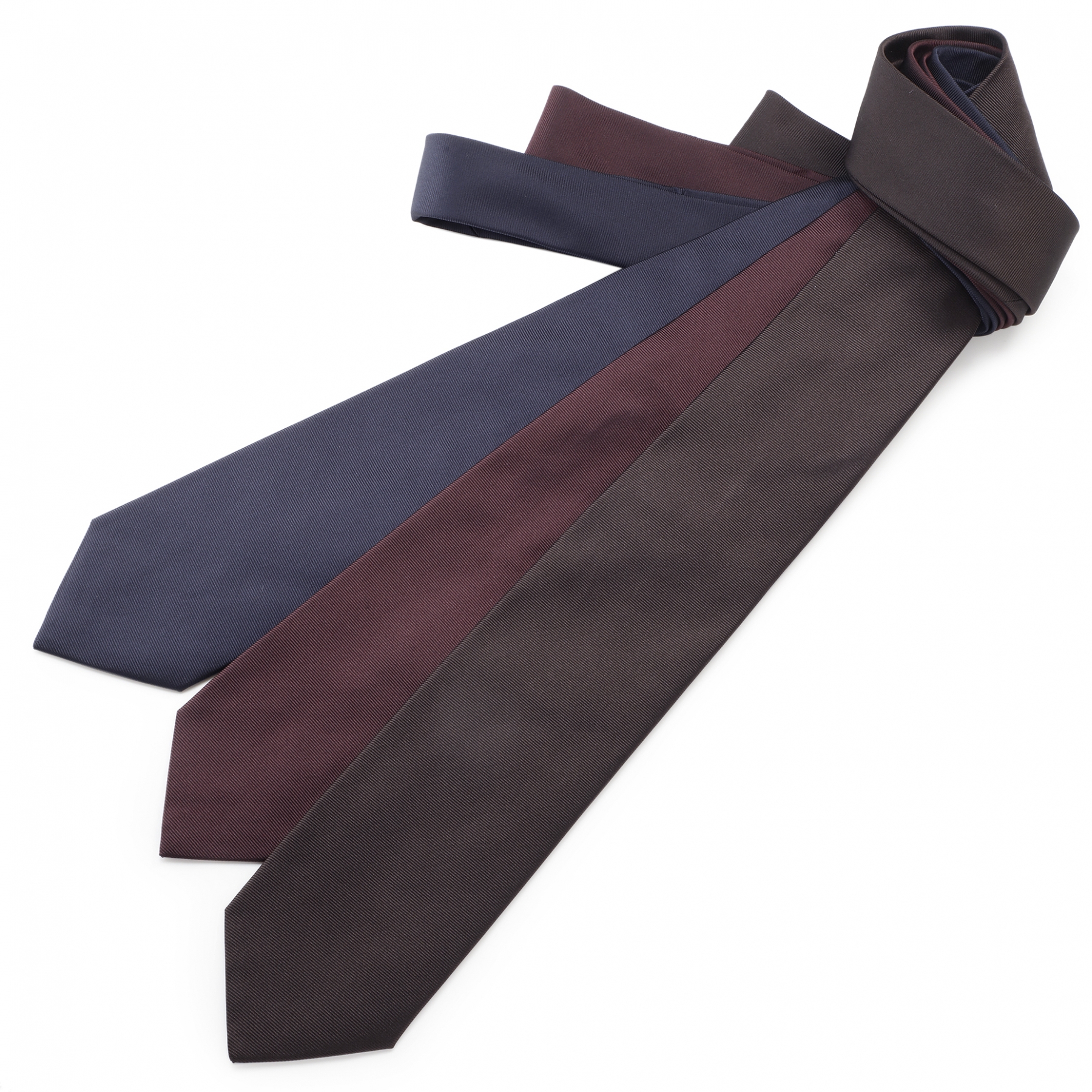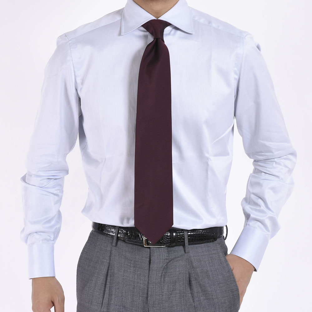 ・シルク100%レップ織りのソリッドタイです。いわゆるツイルのような織り(畝織り)が入ることによって着けた際の表情が豊かになります。
