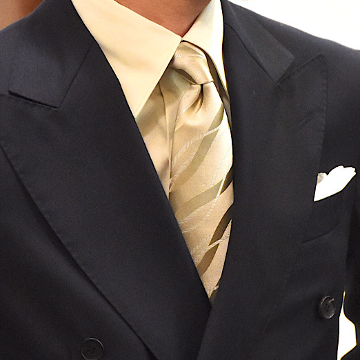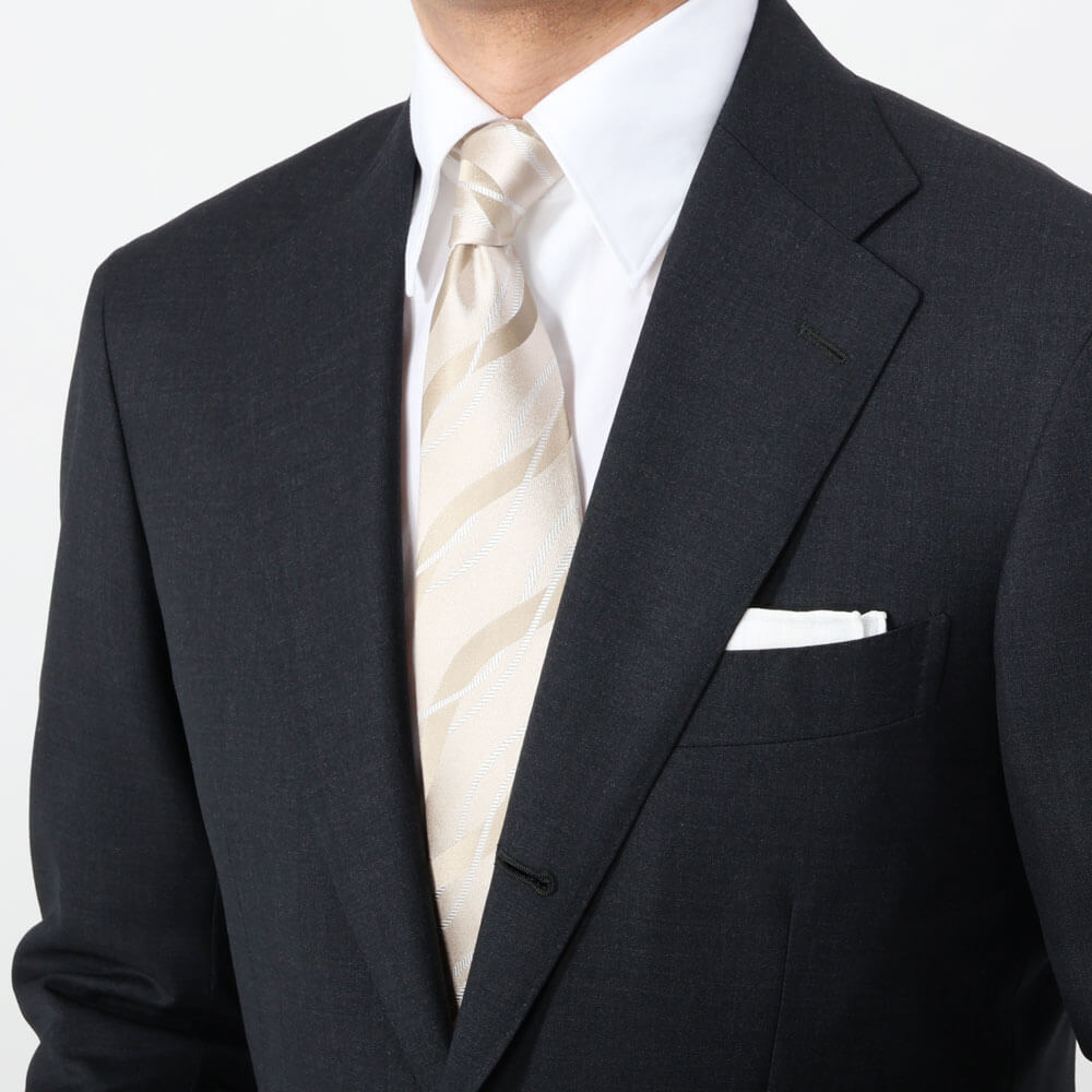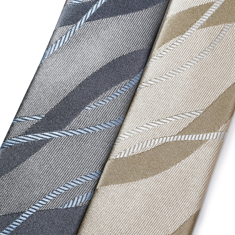 ・密度のある織りで贅沢にシルクが使われており、ベースも柄にも光沢があるため、華やかな印象を与える一本。ライトベージュは昼、グレーは夜のおめでたい席やパーティーにもピッタリです。