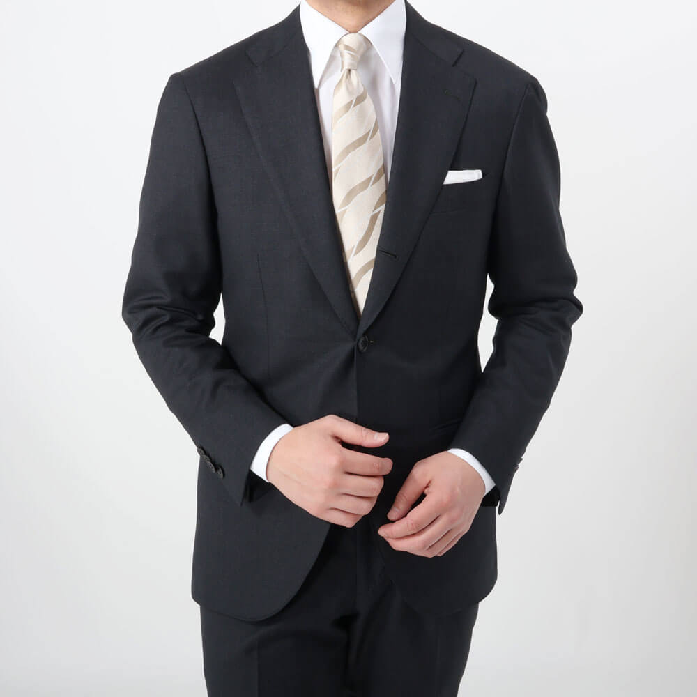 ・「Holiday & Brown(ホリデーアンドブラウン)」をBRでは7.5センチのネクタイ幅で展開。ほんのりモード感あるスマートなVゾーンをお楽しみ頂けます。2色のラインナップ。