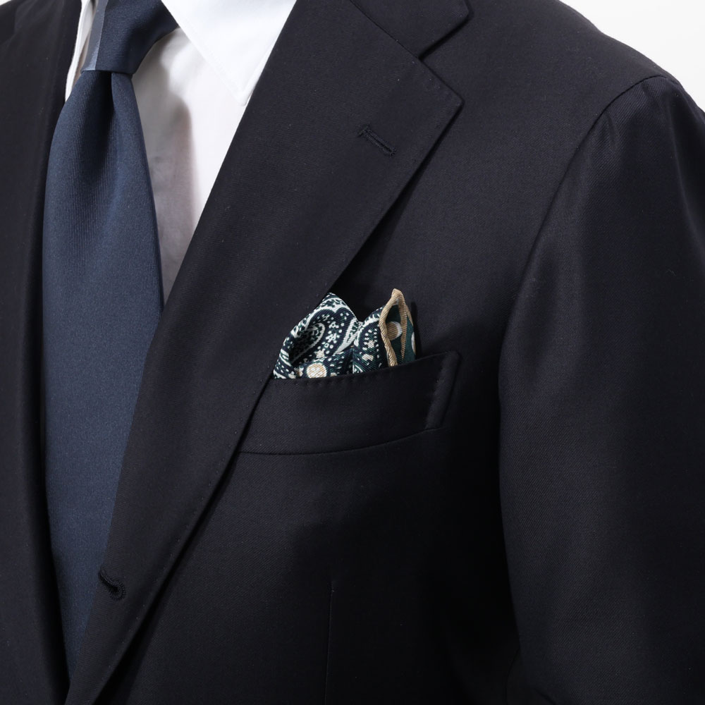 ・定番の白チーフ以外に持っておきたい、確かな技術力が伺えて洒脱さをも醸す逸品です。