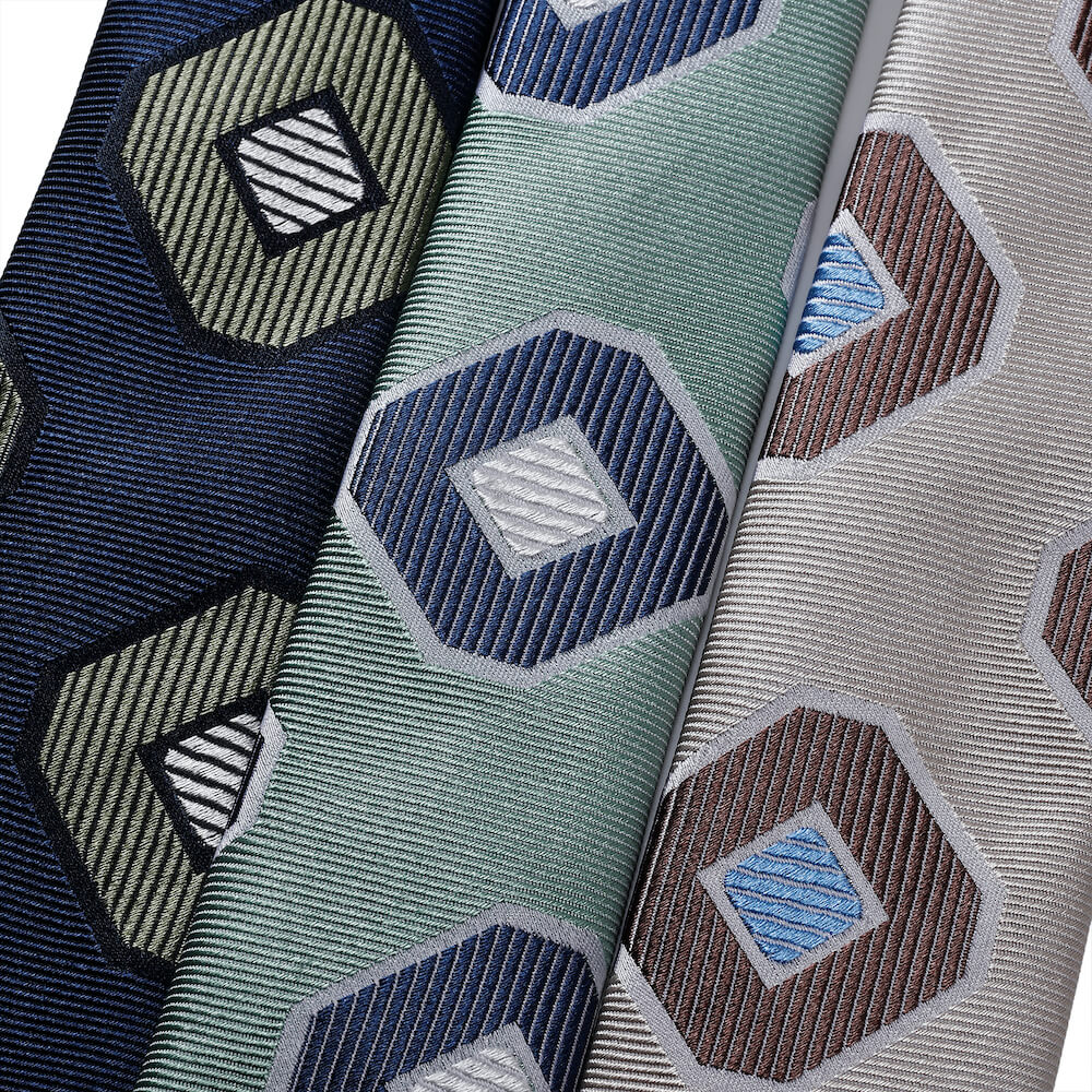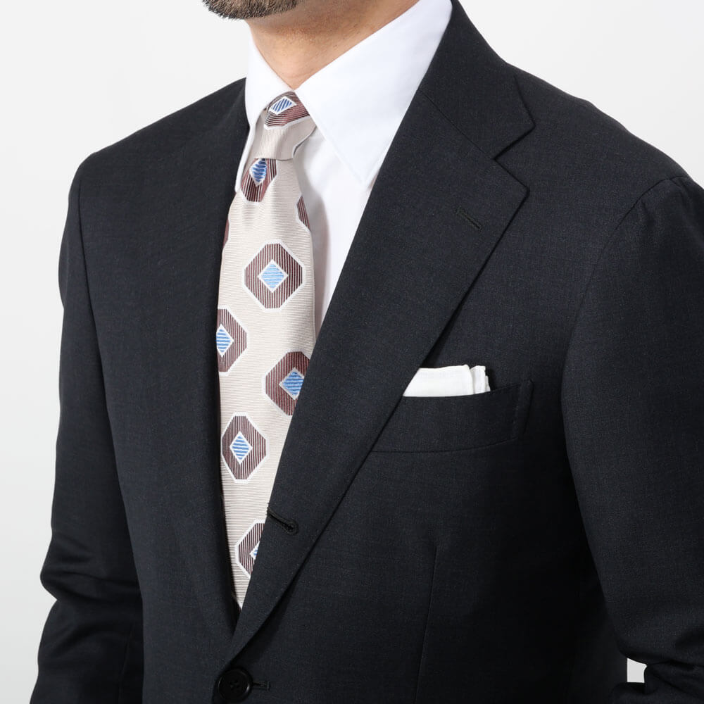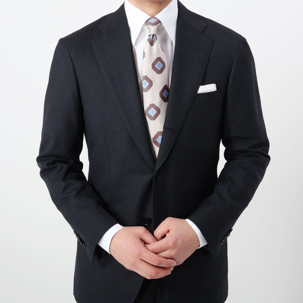 ・ビジネスシーンで印象付けるにはネクタイを利用するのも手の一つ。適度に光沢があり、大きいジャカード柄はそんなシーンにピッタリです。存在感があるので柄物スーツにもどうぞ。