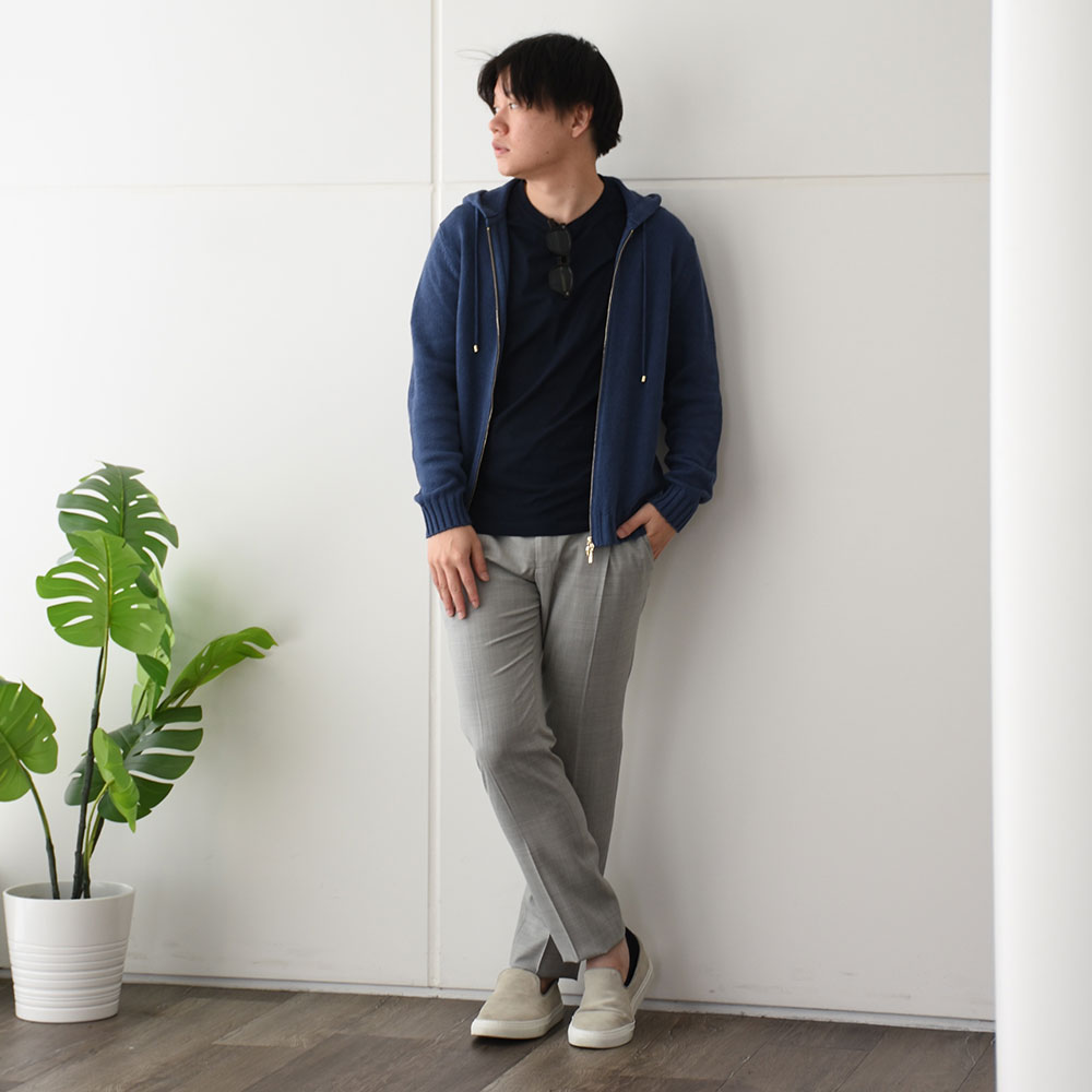 ・元々「Settefili Cashmere(セッテフィーリカシミア)」にあるニットパーカーをモディファイし、適度なフィット感が得られる肩幅とスリーブ、ほどよくゆとりを感じられるボディ、着丈や袖丈も含め、BRらしく上品でリラックス感のあるバランスとフィッティングを目指しました。