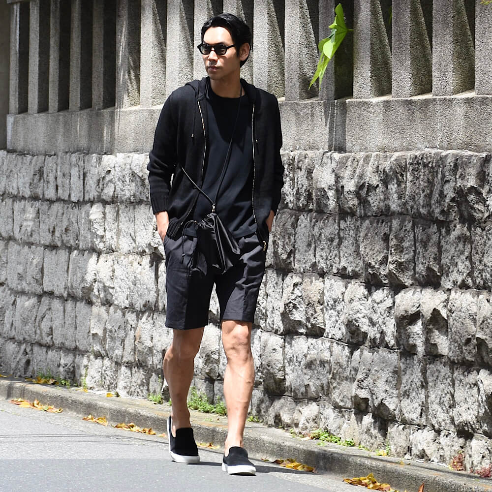 ・素材は5本の糸を撚り合わせ編まれたリネン&コットンのミドルゲージ。リネン特有のザラっと感が少ない柔らかみあるタッチゆえ、通気性がよく快適な着心地です。