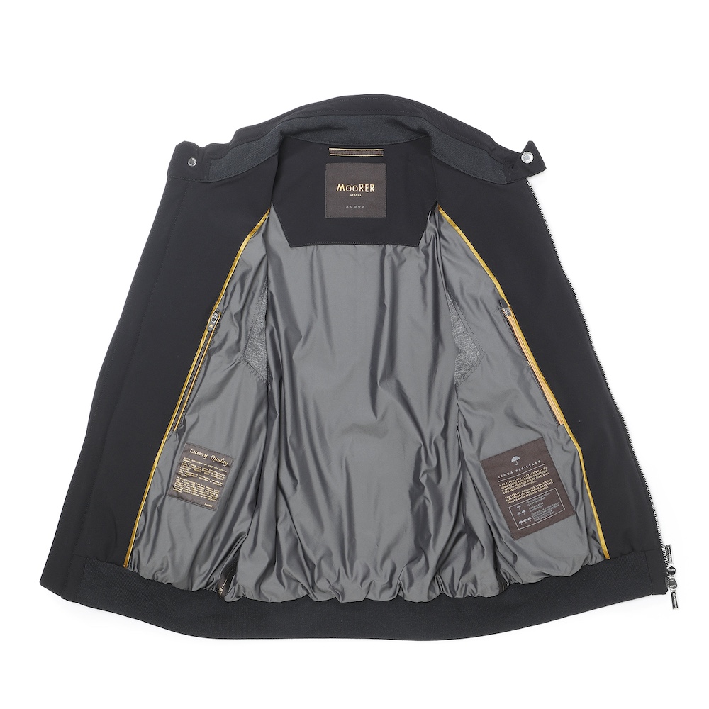 ・全てのポケットは安心感のあるジップ付き、スタンドカラーの内側にはニットリブが取り付けられており、優しい肌当たり。「MooRER(ムーレー)」らしい気の利いた仕上がりです。ダークネイビーとブラック、全2色のラインナップ。
