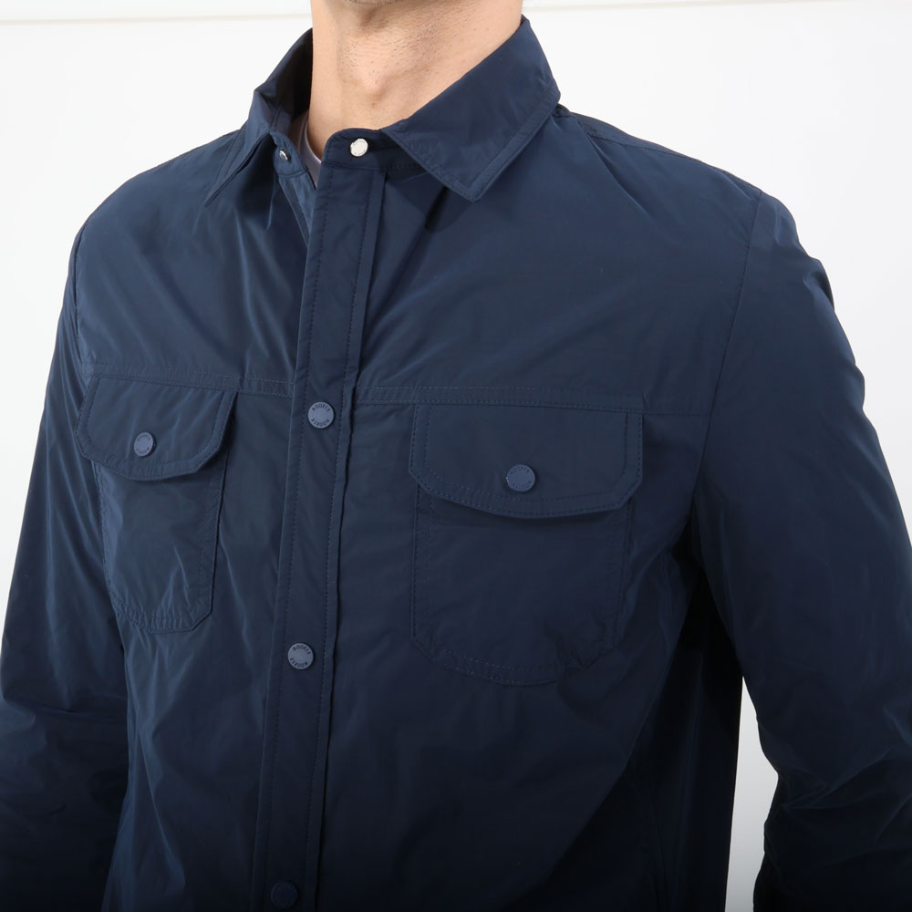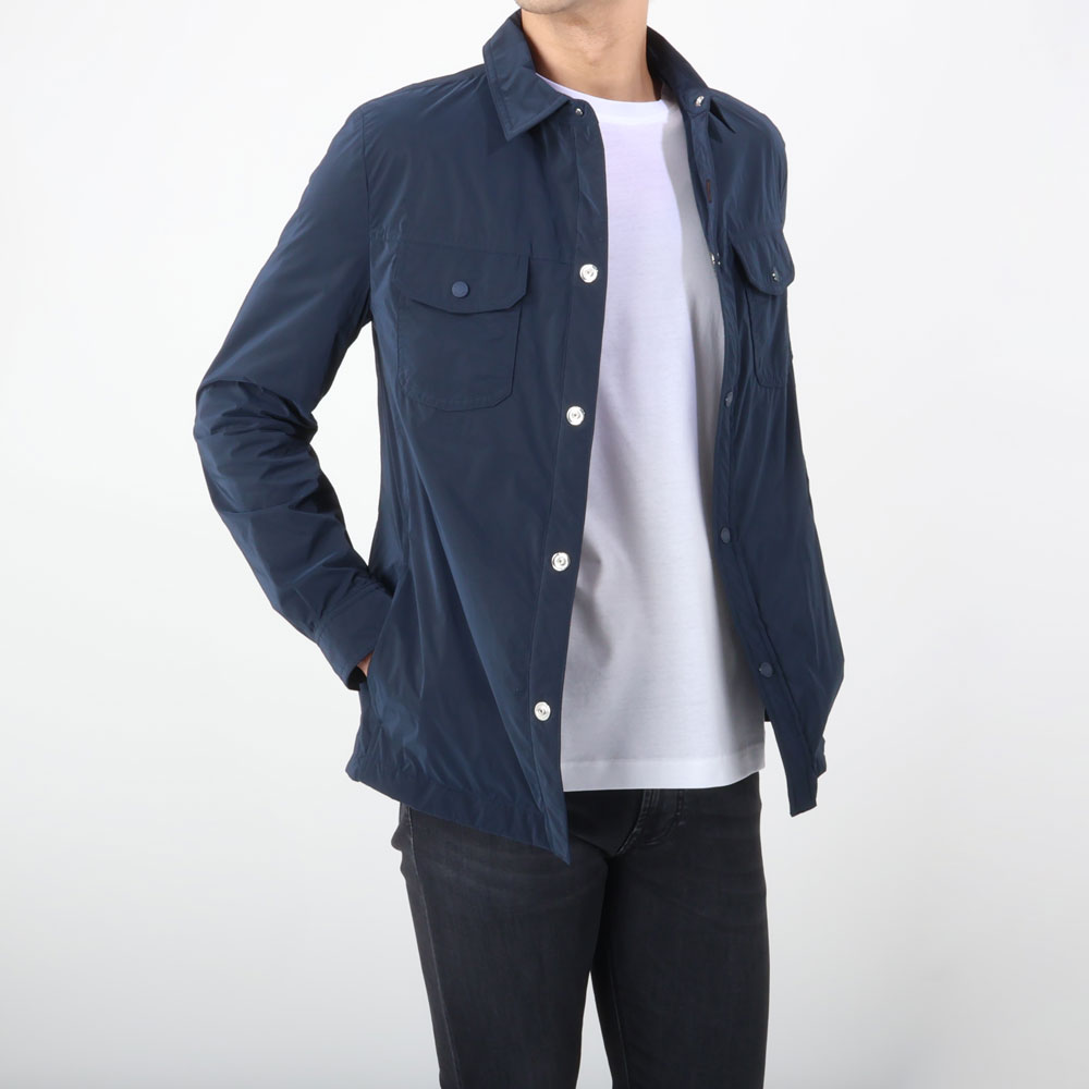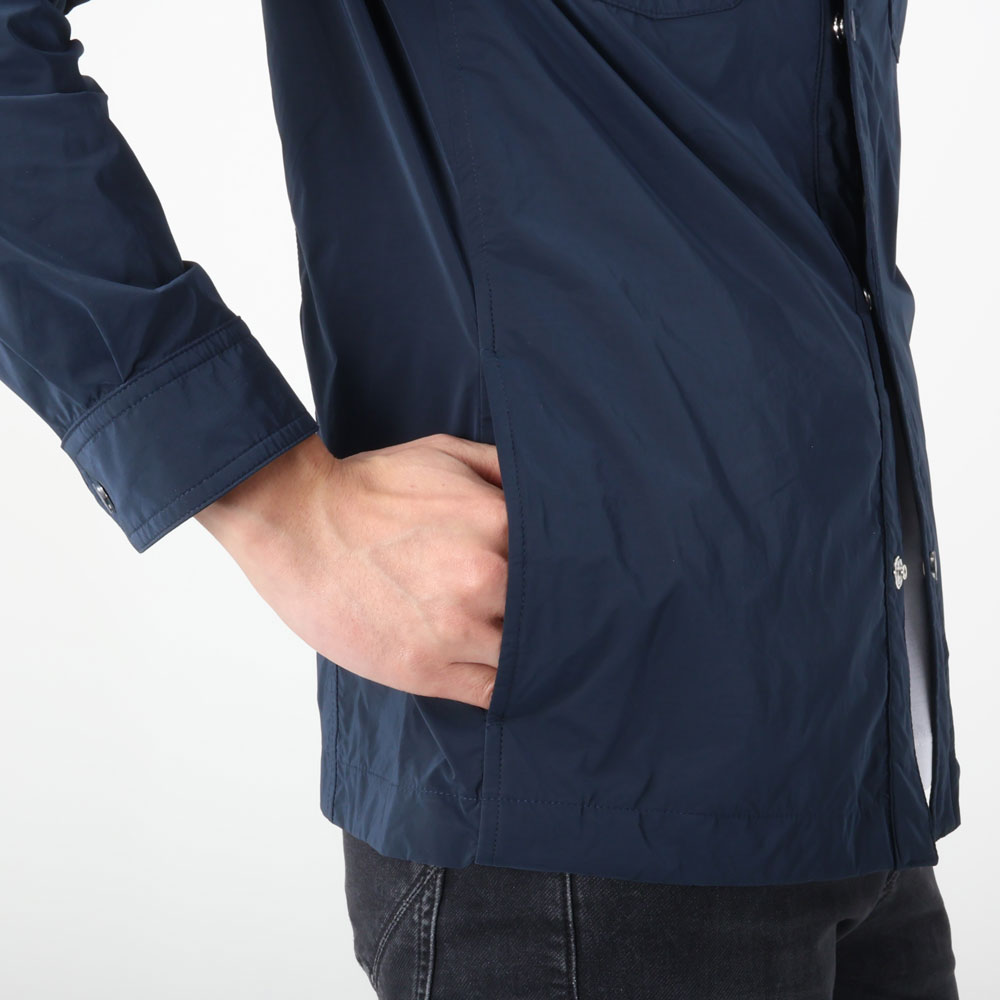 ・形はシンプルなシャツタイプブルゾン。立てても大袈裟にならない絶妙な襟の大きさ、二つのフラップ付き胸ポケット、腰ポケットはマグネット開閉式で物を入れても安心な仕様です。