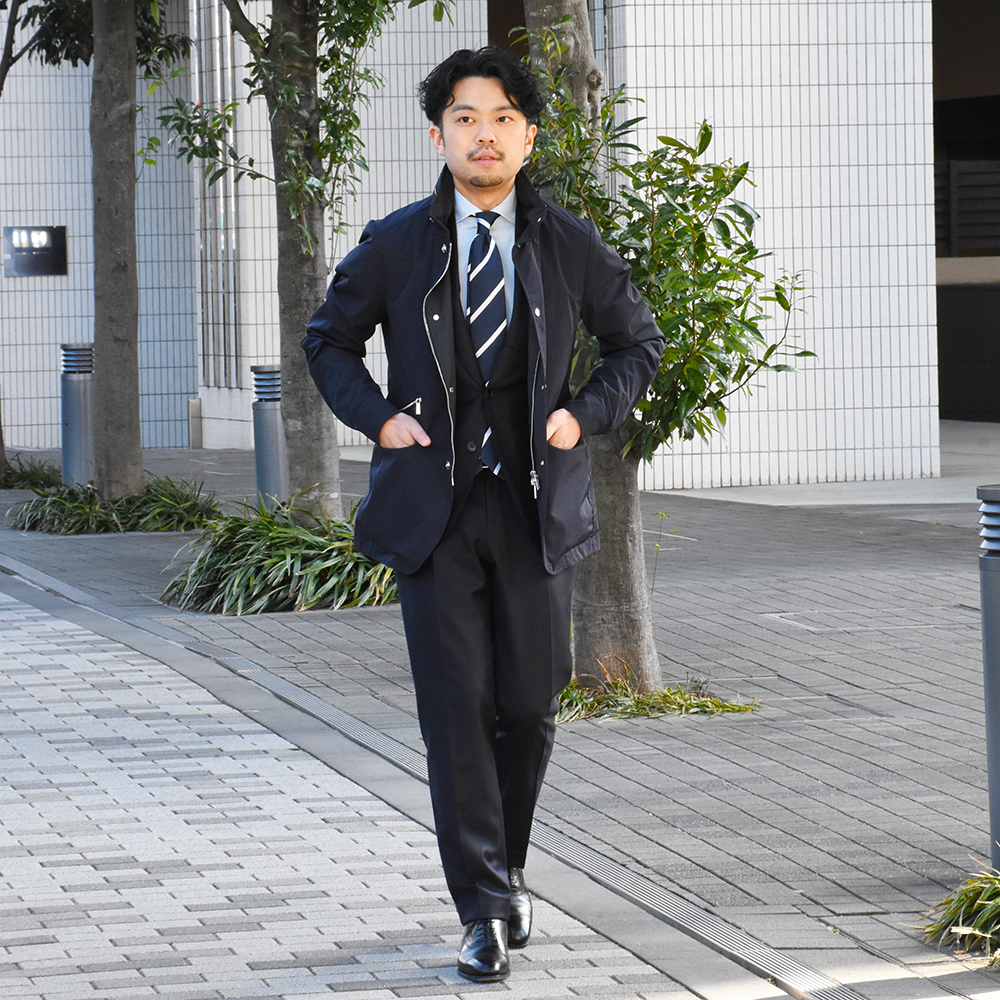 クセのないフィッティングでジャケットを踏襲したかのようなデザイン性もあり、サッと羽織るだけでサマになります。