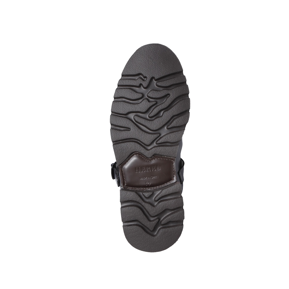 ・レザーの編み込みと通気性の良いカッティングが施されたアッパー、高級感のあるオールレザーのインソール、そして軽いラバーソールが組み合わされた一足です。