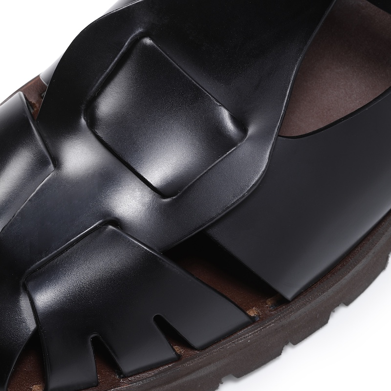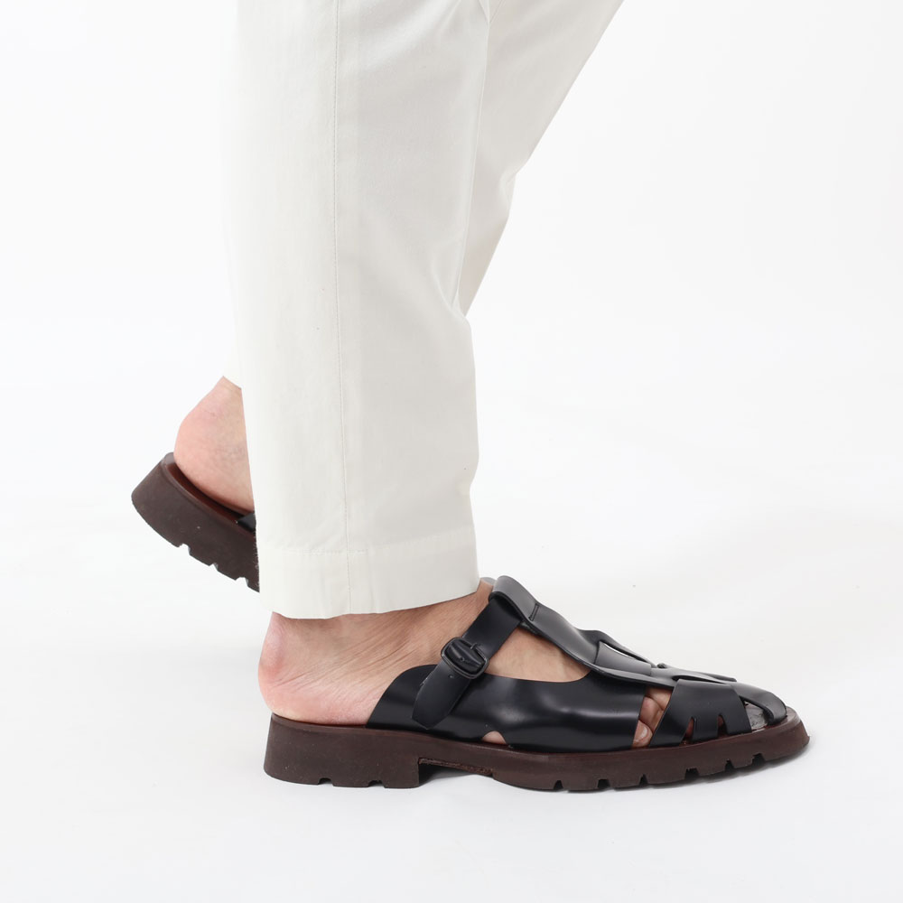 ・レザーアイテムがコレクションの中心で、その中から作りの確かさを備えつつ涼しげなルックスが目を惹くレザーサンダルをご紹介。