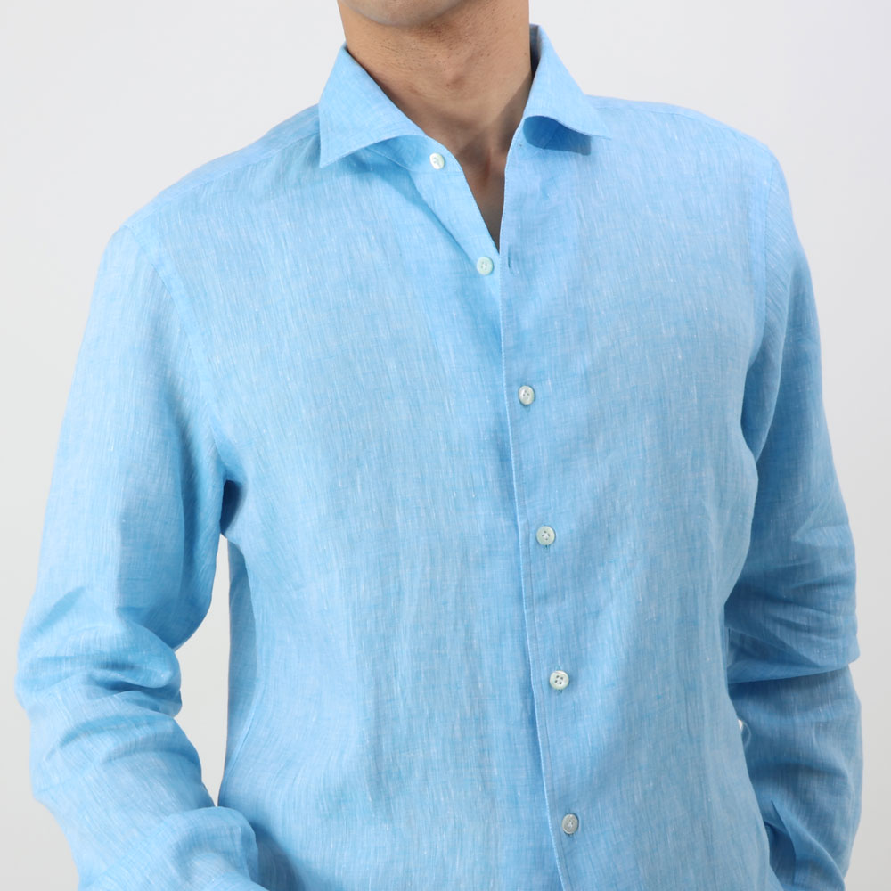 ・襟型"MARCELLO(マルチェッロ)"は、イタリアの名優マルチェッロ・マストロヤンニに由来する名前を持つワンピースカラー。襟を一枚で作るためフロントボタンの裏側部分に見返しを付ける必要があり、生地を多く使う贅沢な作りが特徴です。