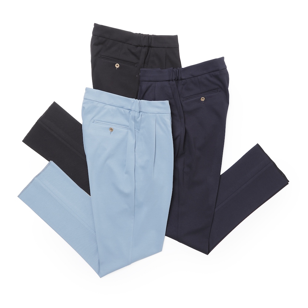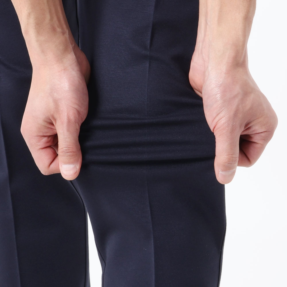 ・全方位抜群の伸縮性。ジャージー素材ゆえ非常にコンフォートな穿き心地です。
