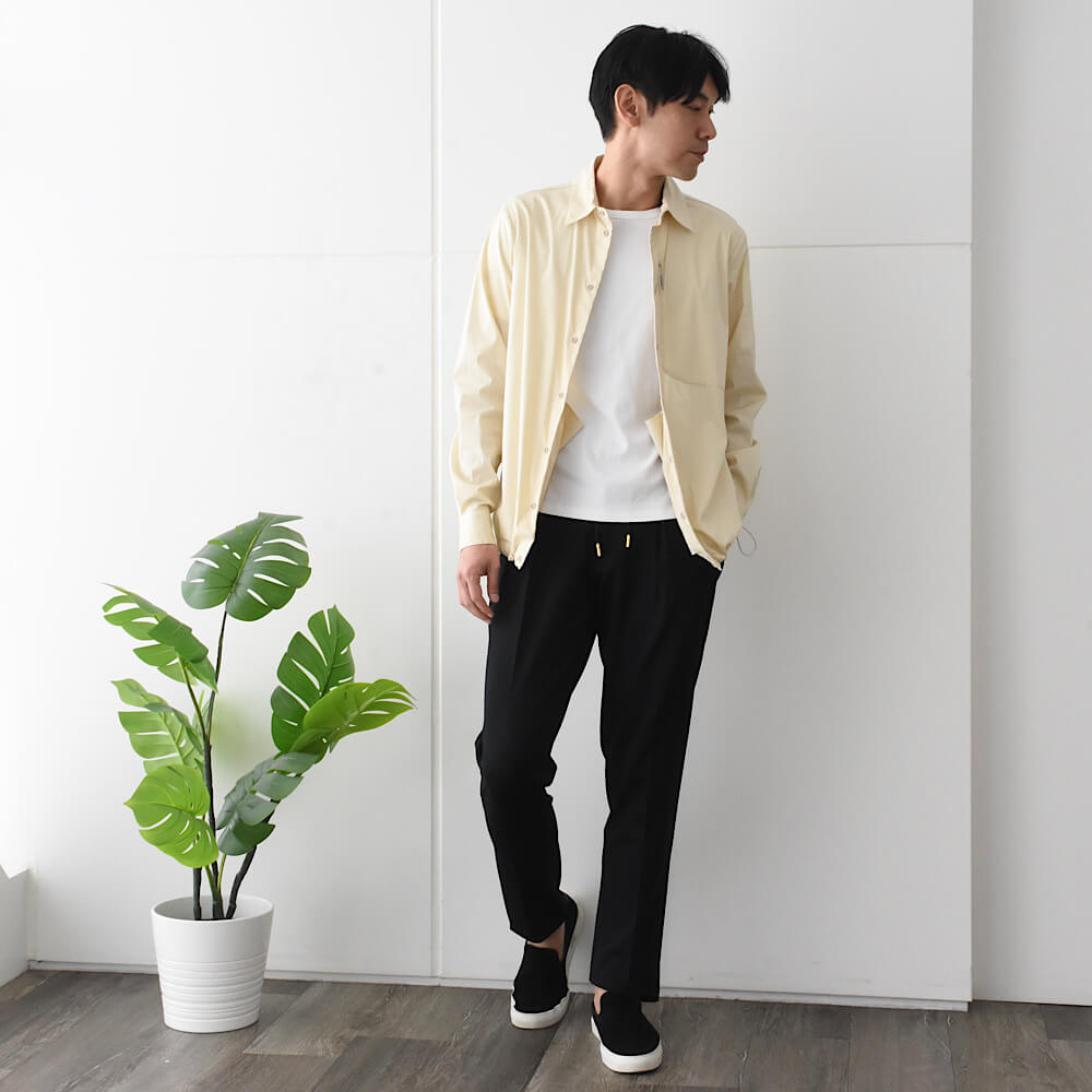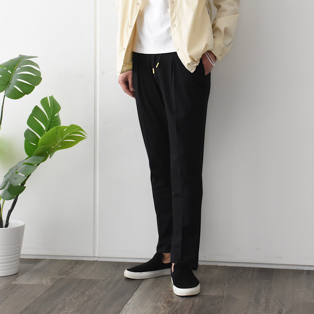 ・生地はストレッチ性抜群のオールシーズン穿けるジャージー。楽すぎる穿き心地による新感覚のスラックス体験をお楽しみ頂ける一本です。全6色(ホワイト/グレージュ/ピンキッシュホワイト)をラインナップ。