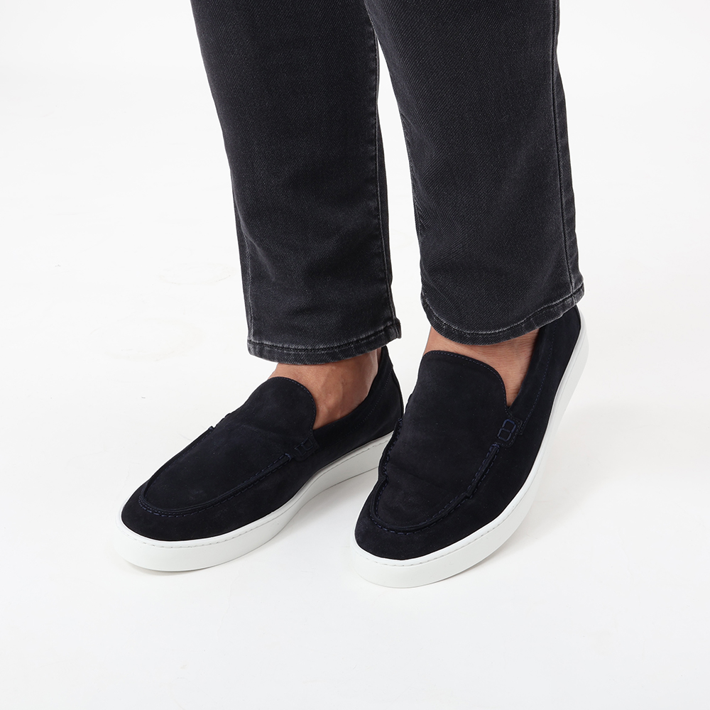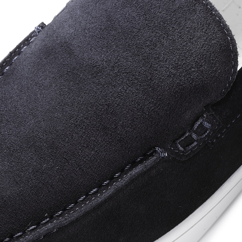 ・真っ白ソールにより圧倒的な清潔感が加わり、ビジネスシーンでも履けるスニーカーに仕上げられています。ブラック/ダークネイビー/ライトグレーの3色をラインナップ。